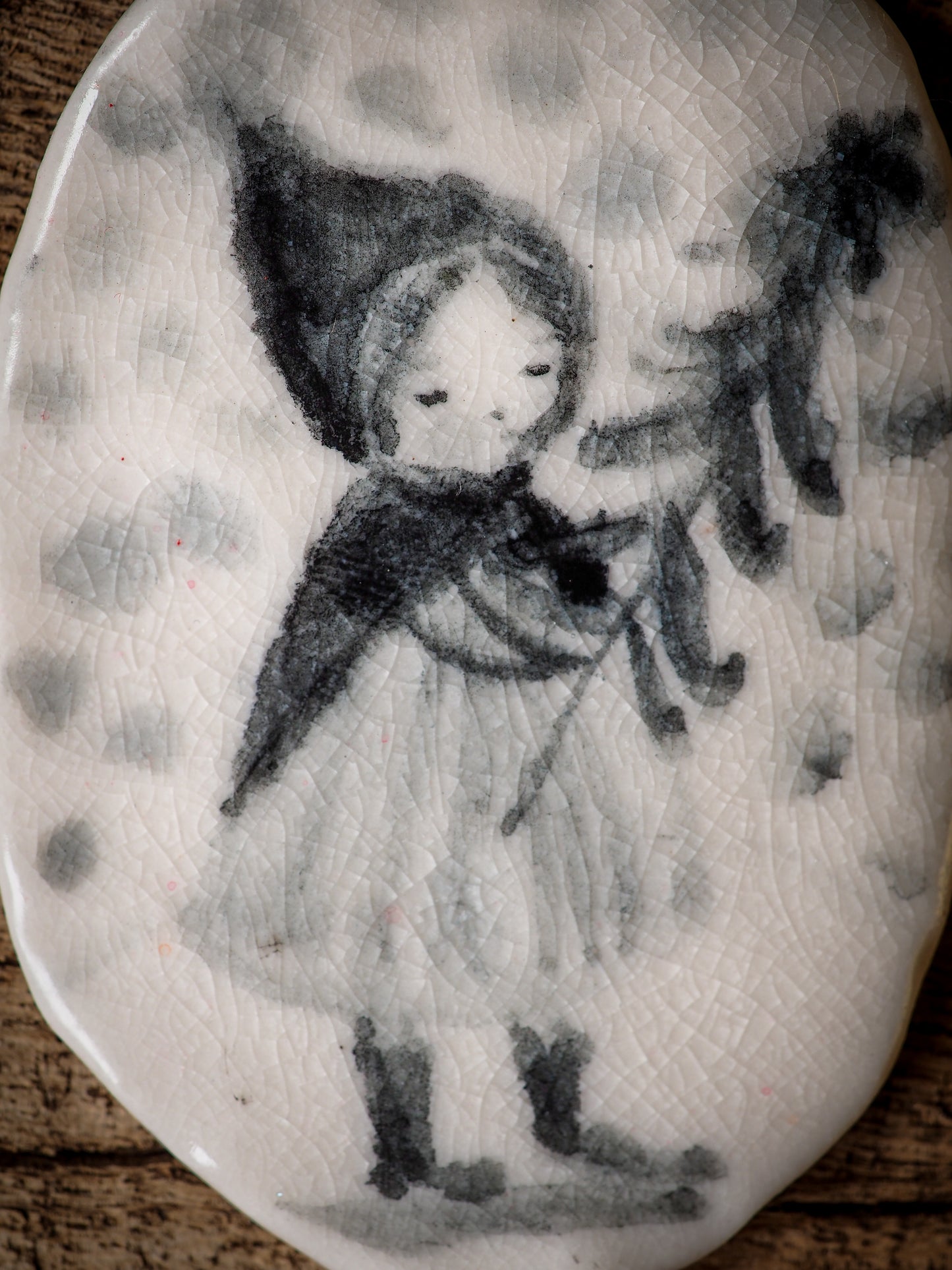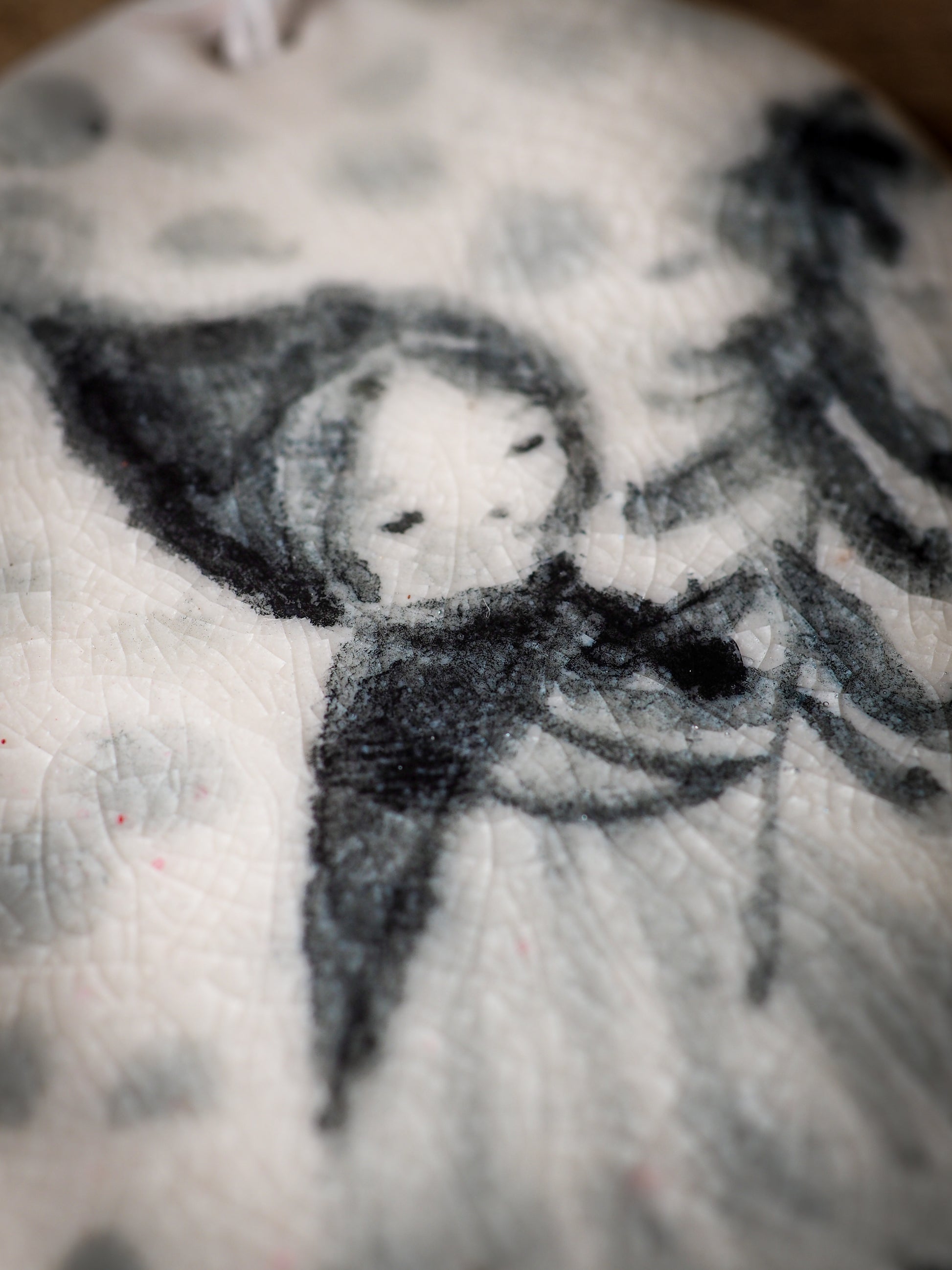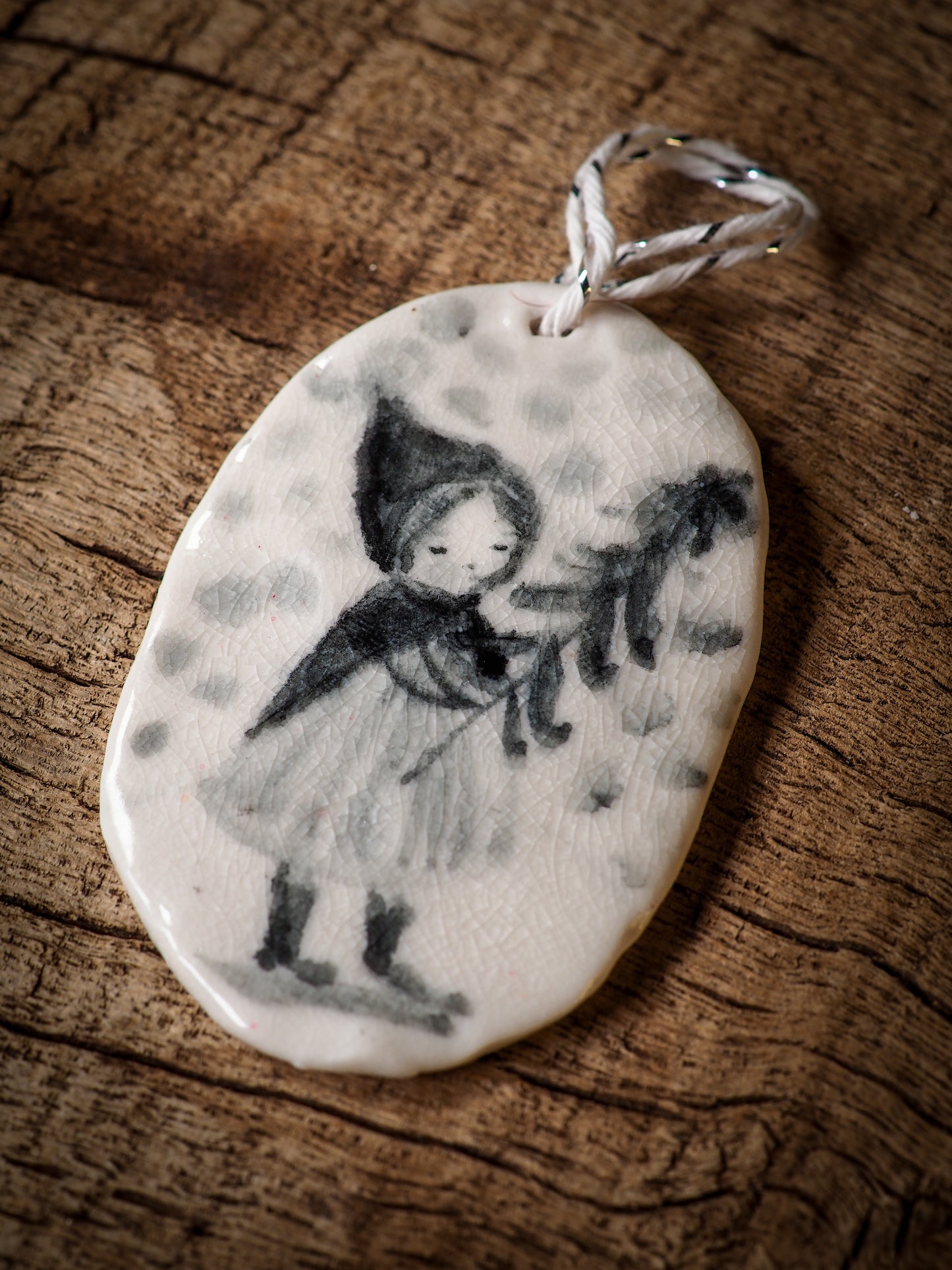 Totally hand made on my studio, each of my ornaments is hand painted, fired twice on a kiln at more than 2000 Degrees, then finished with a beautiful twine hanger.