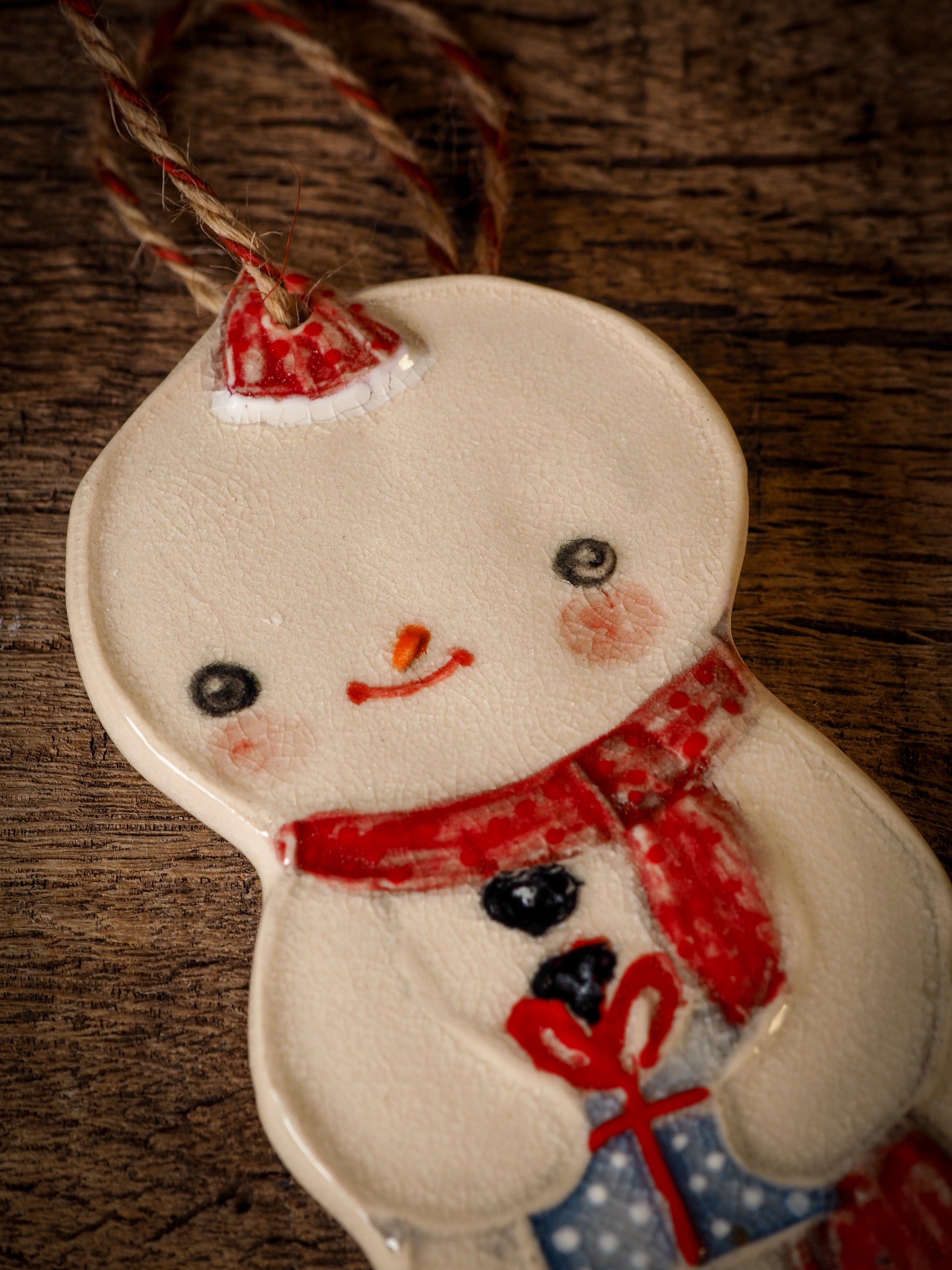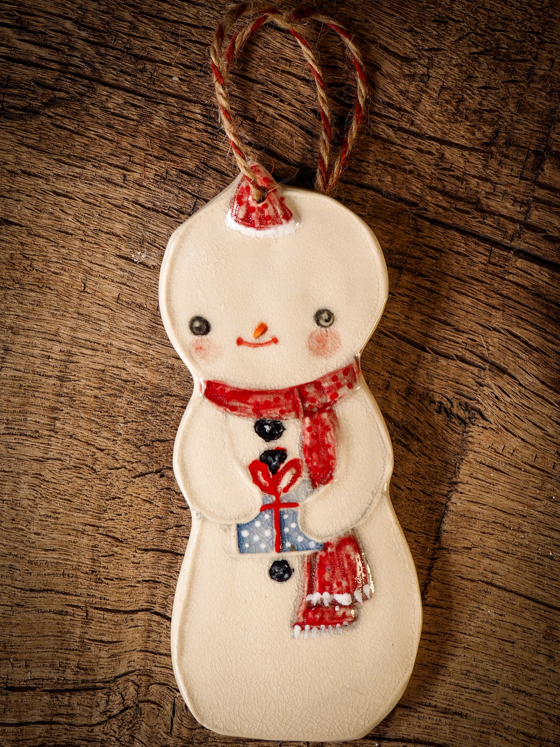 Totally hand made on my studio, each of my ornaments is hand painted, fired twice on a kiln at more than 2000 Degrees, then finished with a beautiful twine hanger.