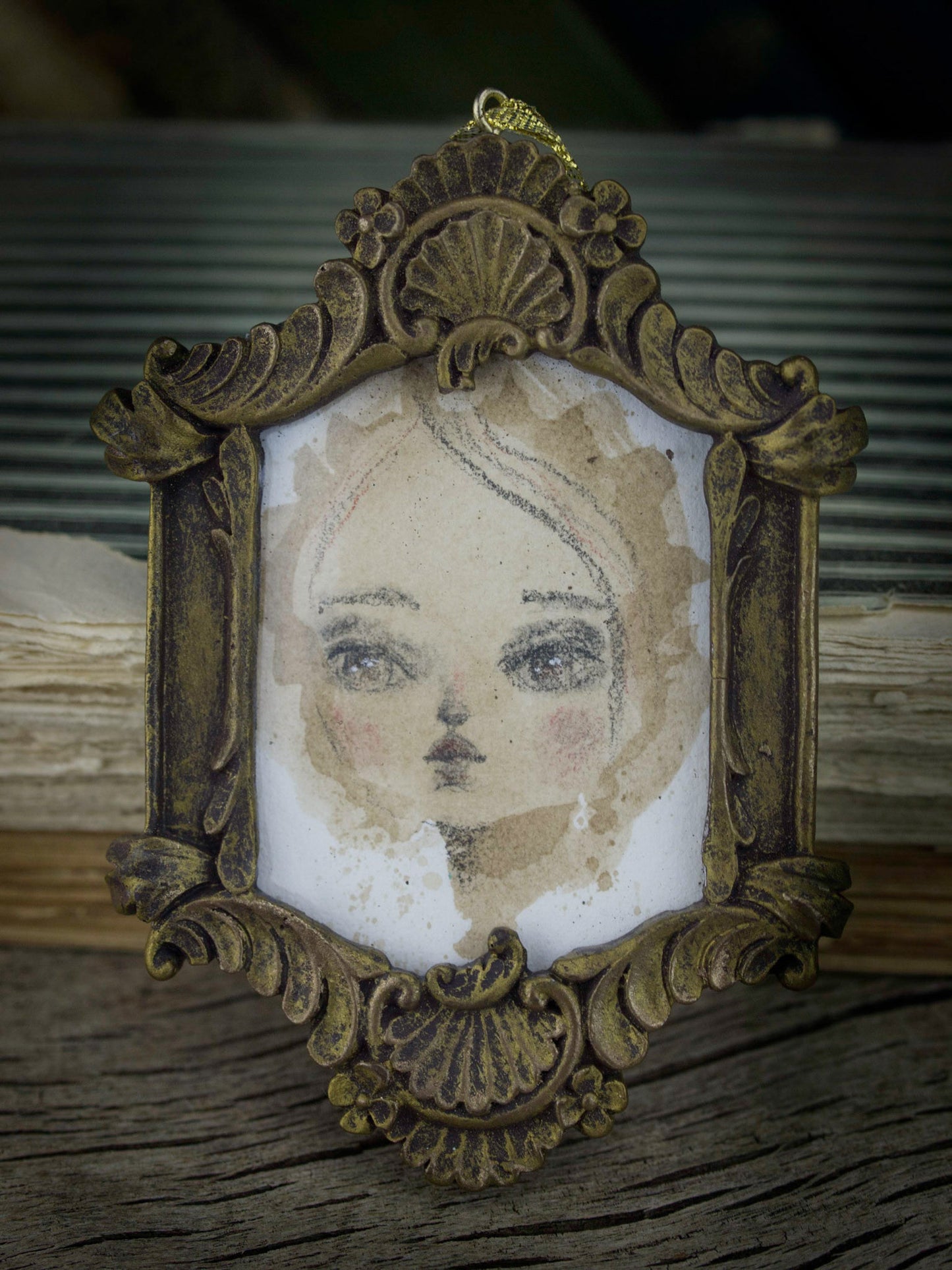 This is a very tiny painting, it measure approx. 2"x3", but she keeps my beautiful eyes and facial expressions that make my art so recognizable.