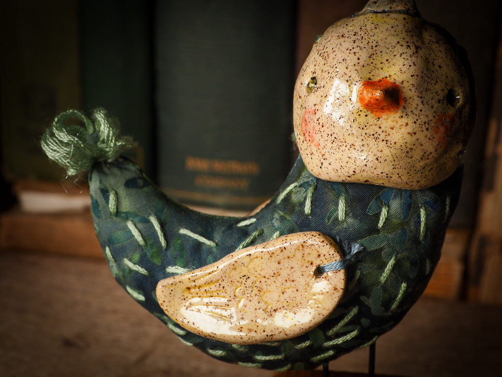 The combination of natural materials creates an amazingly organic feel, it looks like I just found these critters on the forest of Danita Land and I invited them to come and live in my studio while they look for a forever home where they will be loved and cherished in their natural beauty. The clay used on their faces is smooth and soft because of the porcelain I use, and it has a weathered crackled surface to make them look worn and loved for a very long time.