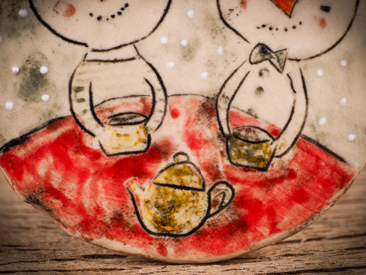 Decorated with an original holiday and winter scene illustration inspired by one of my previous paintings, there are Christmas trees, peppermint cones, scarves, hot cocoa mugs, snowmen, snowball fights, and everything that makes winter cozy. Each ornament is unique and special and cannot be repeated. You are getting a one of a kind ornament to hang on your tree, or use it as one of your favorite home decorations.