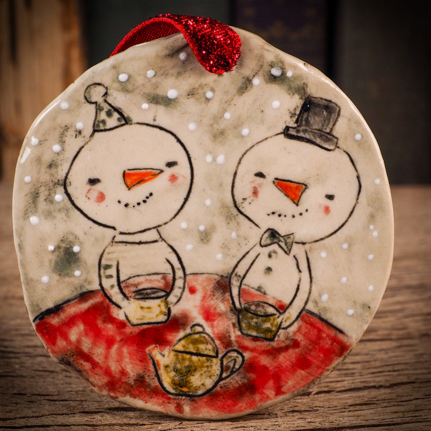 You are looking at original handmade ceramic Christmas and Holiday tree ornament by Idania Salcido, the artist behind Danita Art. Hand made with glazed stoneware at Idania's ceramic studio, the ornament measures approx. 3 inches tall and it is hand painted by the artist.