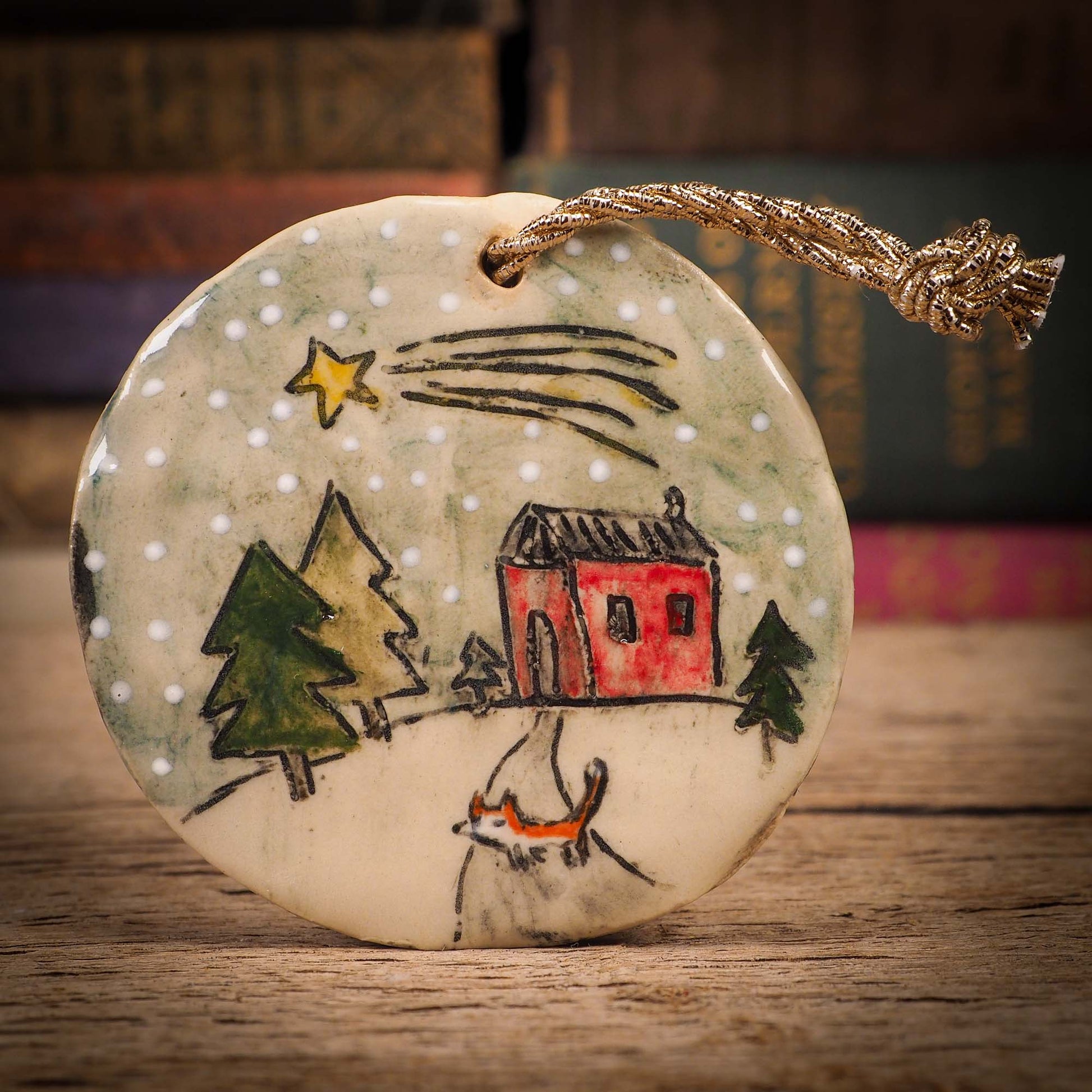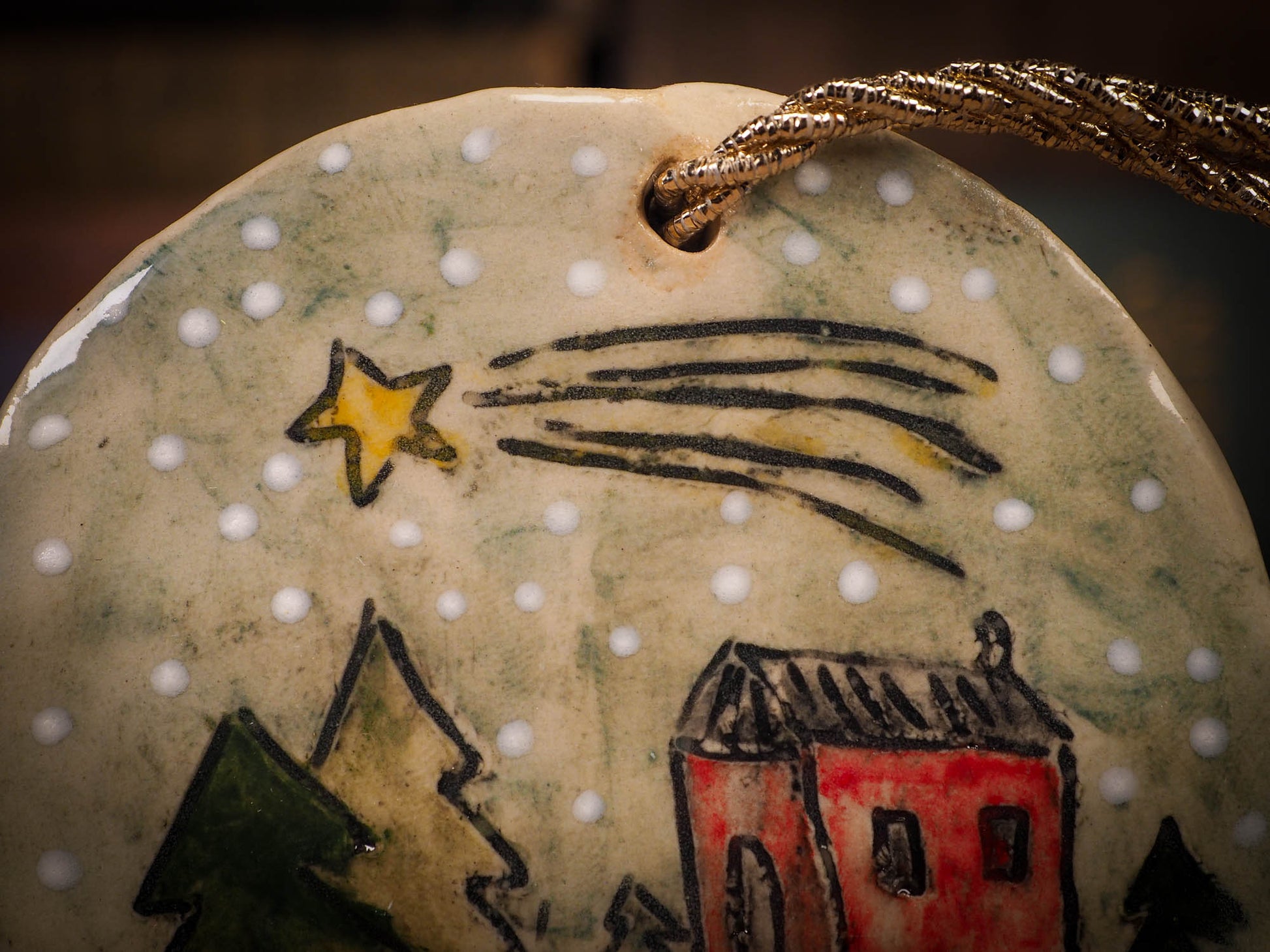You are looking at original handmade ceramic Christmas and Holiday tree ornament by Idania Salcido, the artist behind Danita Art. Hand made with glazed stoneware at Idania's ceramic studio, the ornament measures approx. 3 inches tall and it is hand painted by the artist.