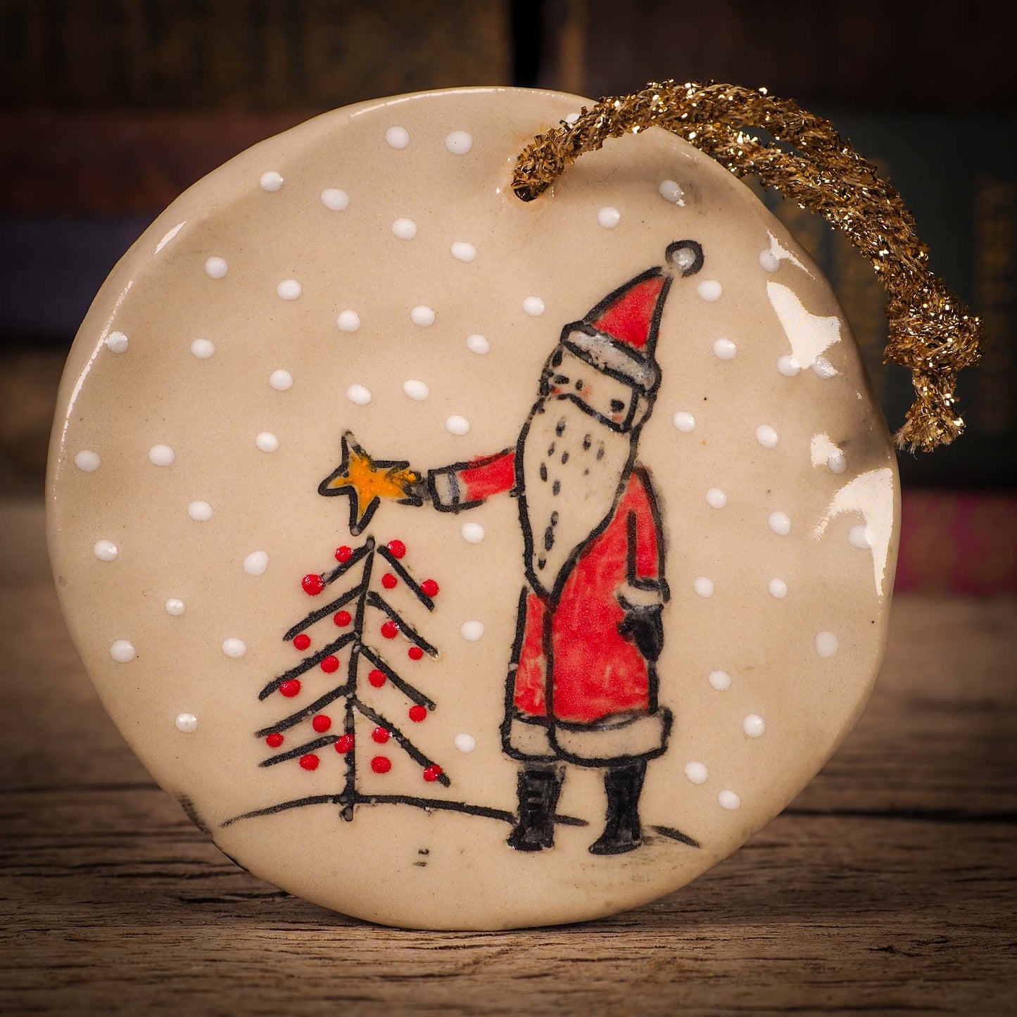 You are looking at original handmade ceramic Christmas and Holiday tree ornament by Idania Salcido, the artist behind Danita Art. Hand made with glazed stoneware at Idania's ceramic studio, the ornament measures approx. 3 inches tall and it is hand painted by the artist.