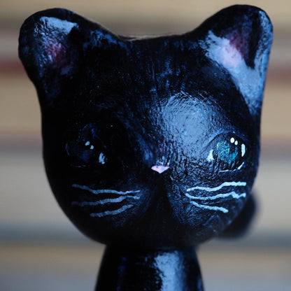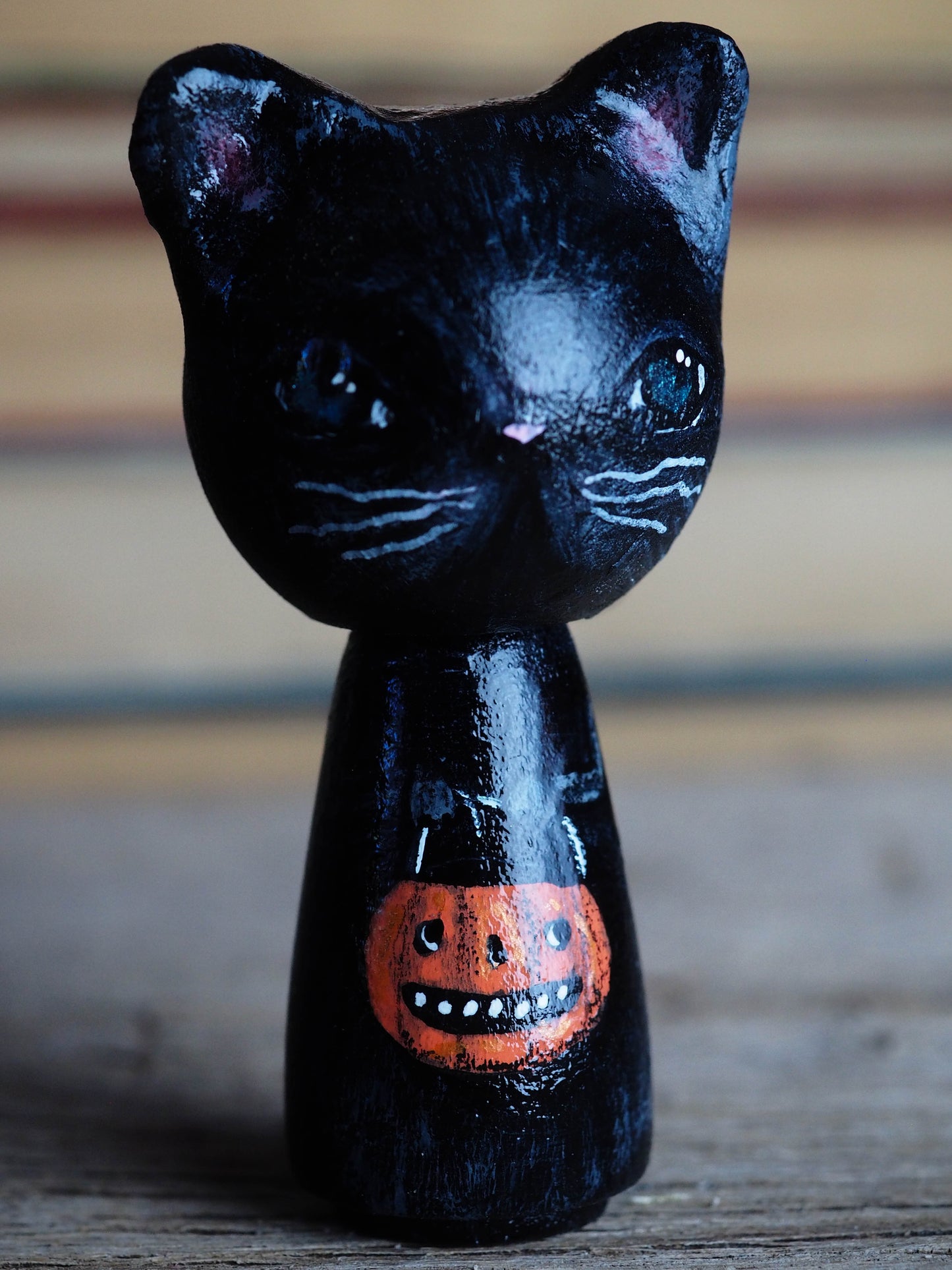 SALEM THE BLACK CAT - Original hand made Kokeshi wood peg Halloween art minifig doll by Danita