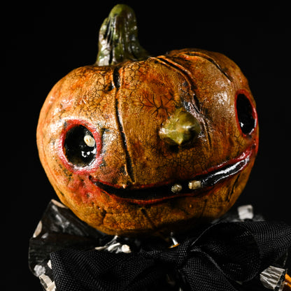 This handmade creepy cute Halloween original art doll was made by Idania Salcido, the artist behind Danita Art, using paper clay and fabrics, sculpting a whimsical face with the famous Danita lively eyes, painted with a spark of life on them.