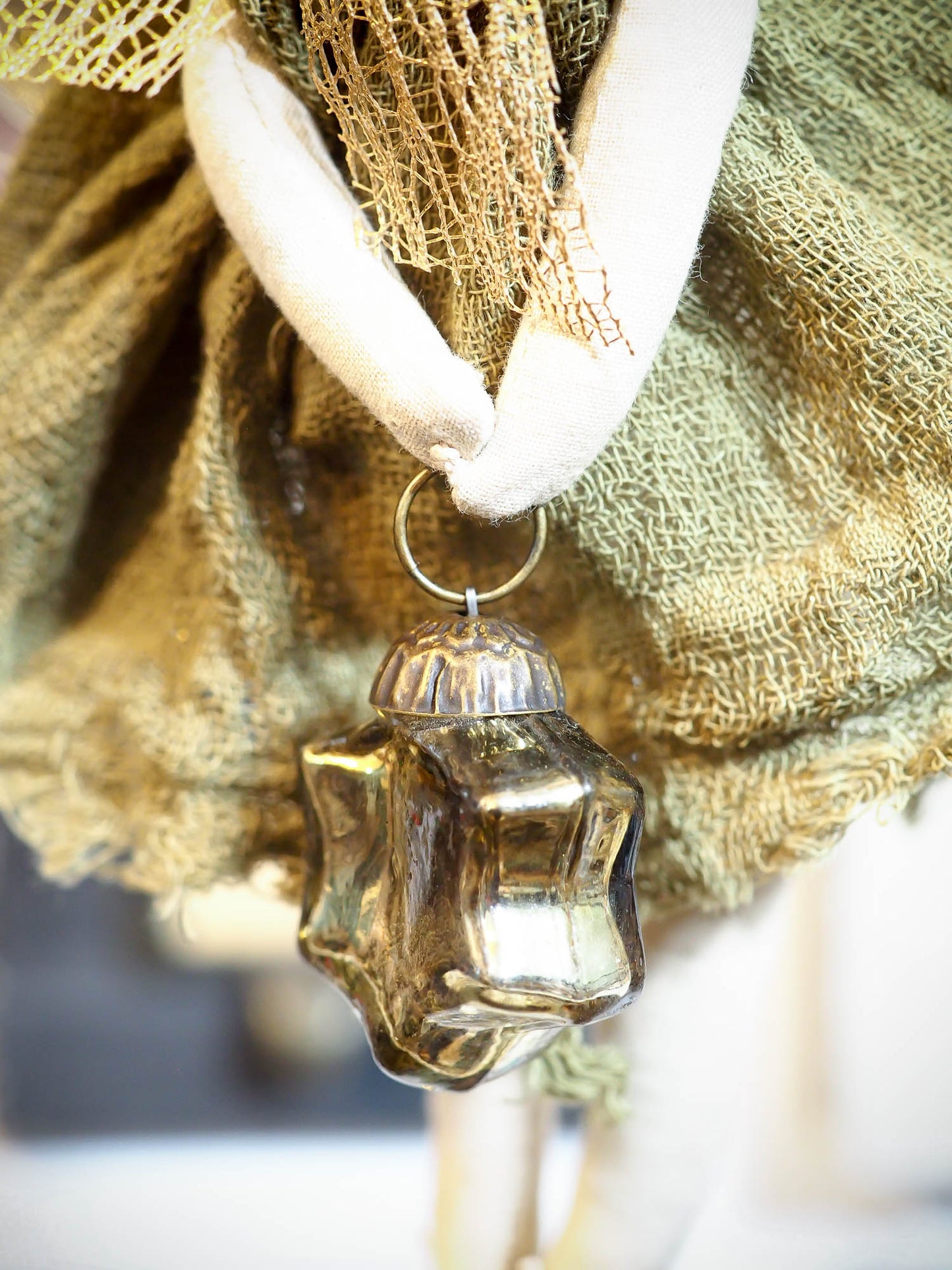 The dress in this doll is hand dyed using natural pigments that Danita extracts from flowers, fruits and seeds, and they have a very organic and natural aged and distressed look.
