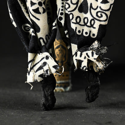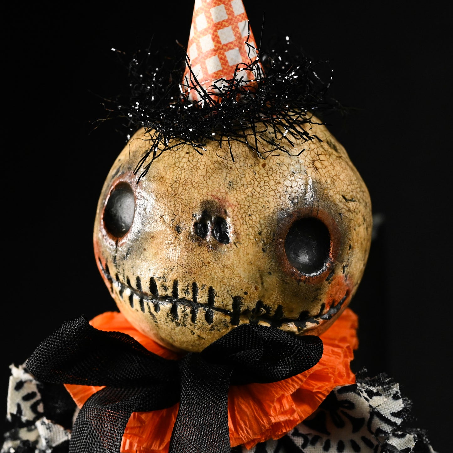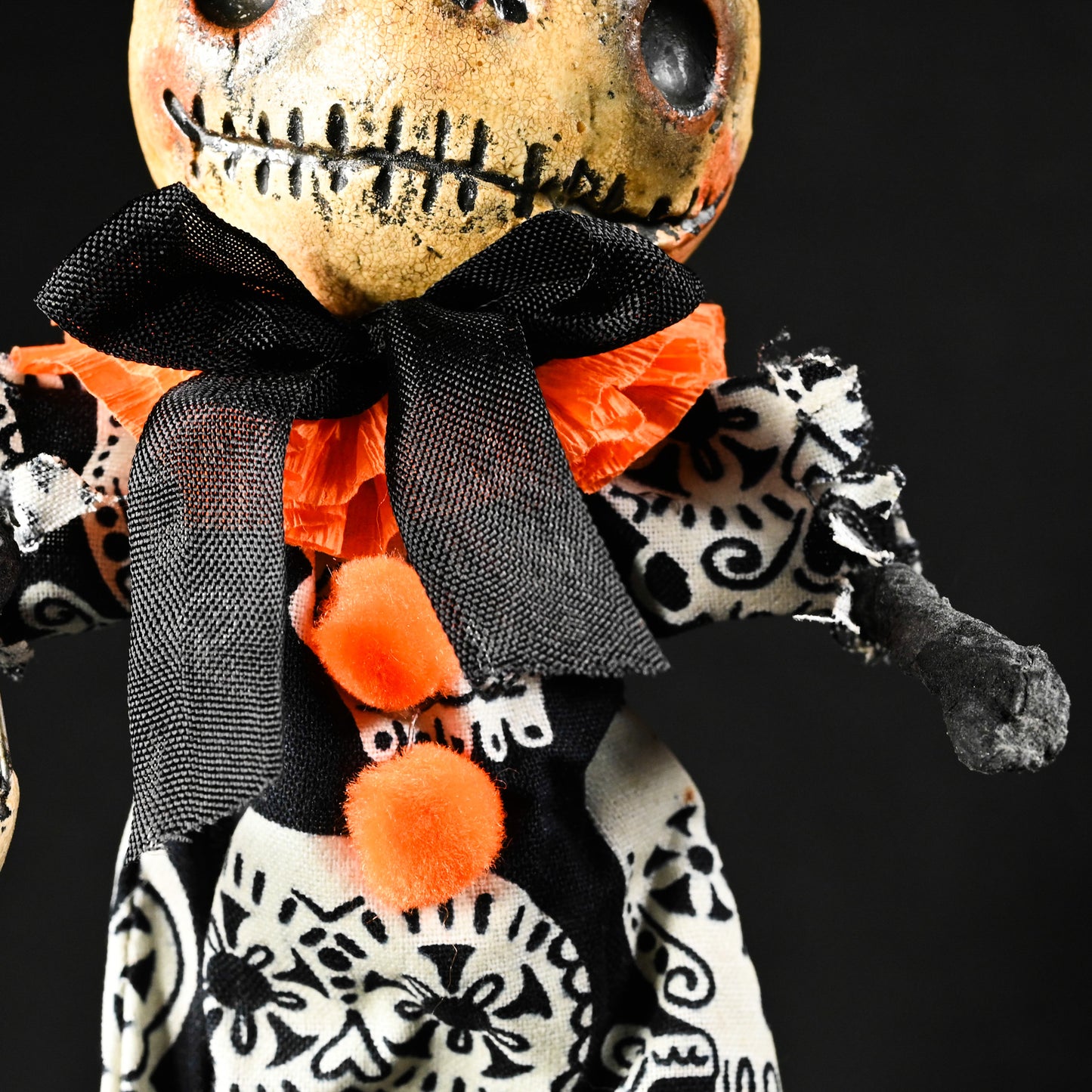 This handmade creepy cute Halloween original art doll was made by Idania Salcido, the artist behind Danita Art, using paper clay and fabrics, sculpting a whimsical face with the famous Danita lively eyes, painted with a spark of life on them.
