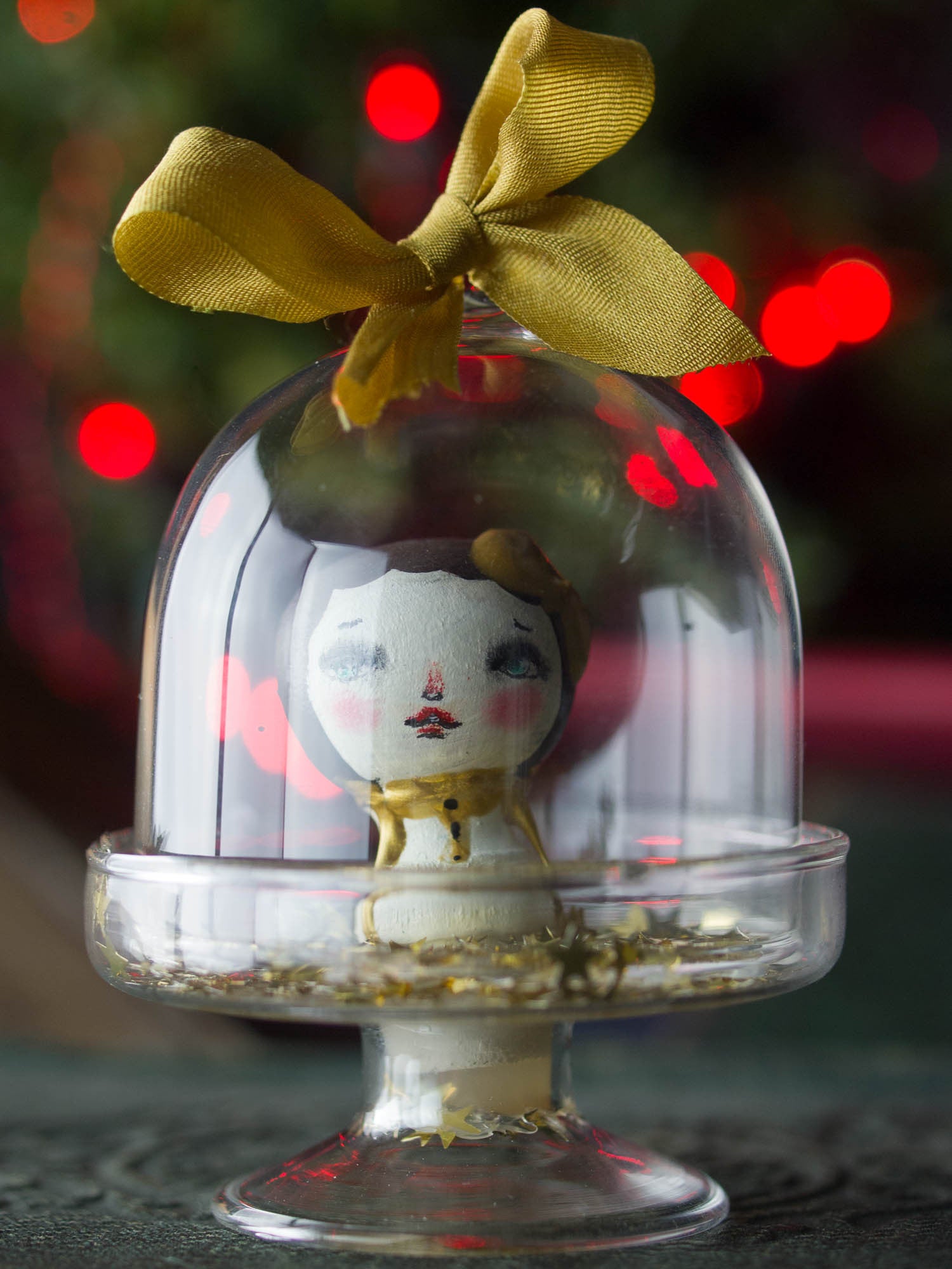 This little series of mini kokeshi dolls is extremely cute! Tiny tiny art dolls that live inside a glass dome that can be placed on your Christmas tree as ornaments or on your dinner table as accents, or maybe on your showcase where they will be displayed all year long!