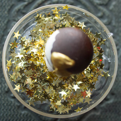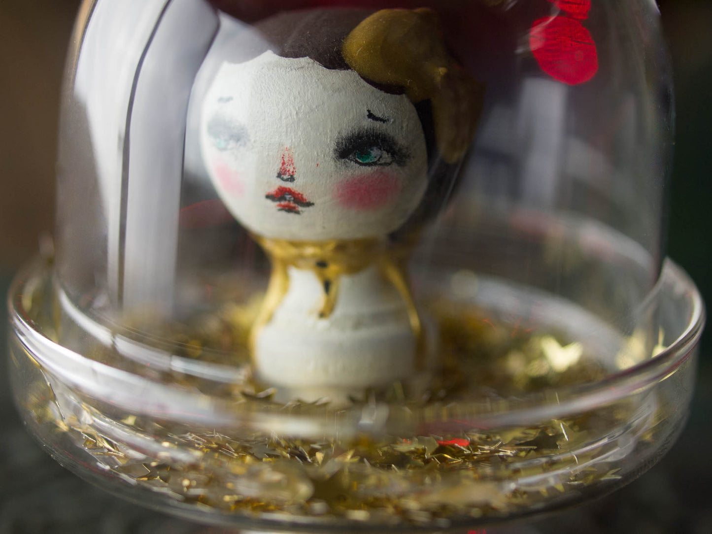 Each little 1" doll is hand painted, with a beautiful face and very detailed eyes and a bow on their heads made with 3D paint. Their glass dome is covered in glittery stars, and they will reflect the light gibing each doll a beautiful shimmer. Just imagine them lighted by a fireplace or a Christmas tree!