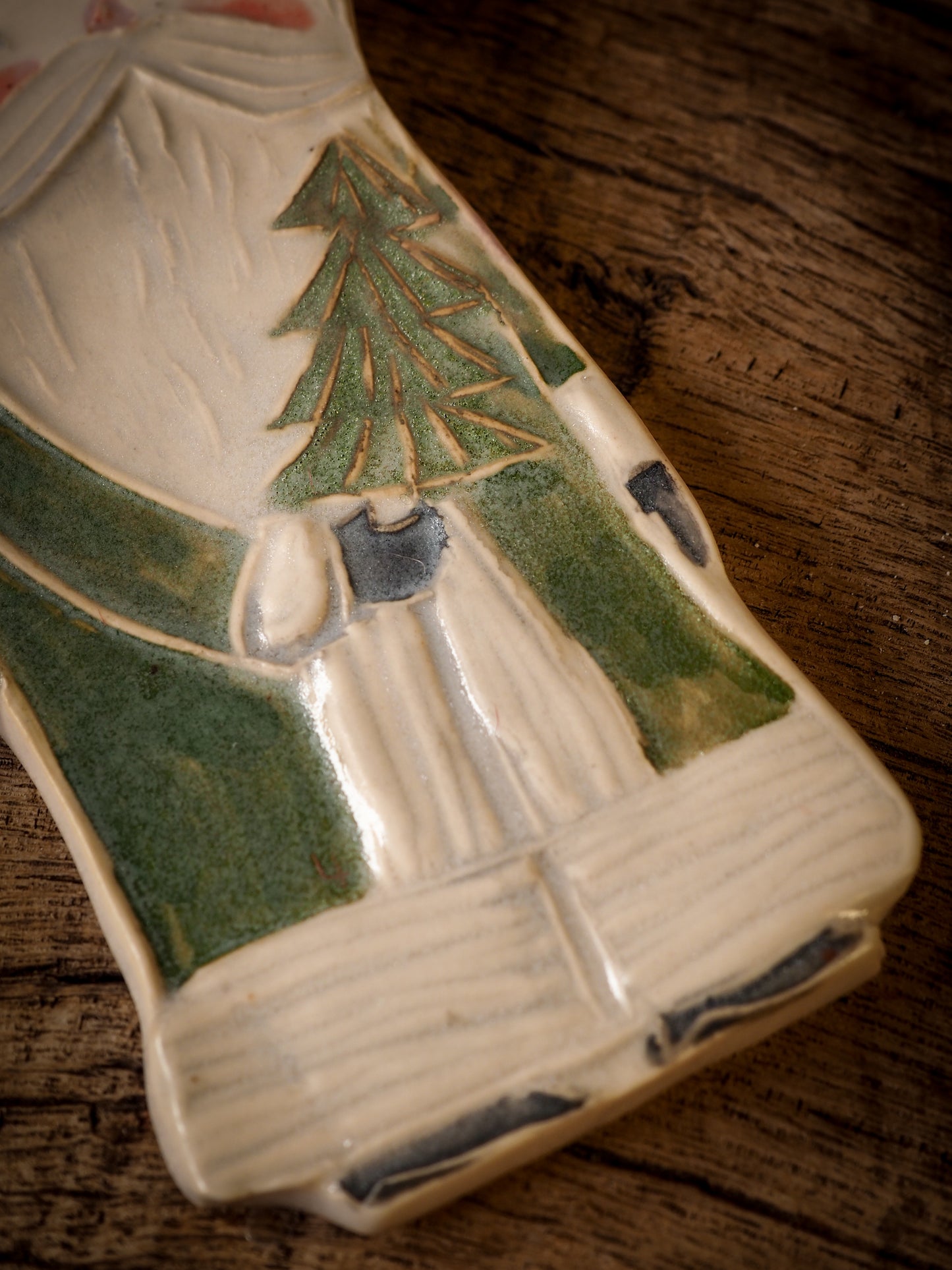 This is an original handmade fire glazed ceramic Christmas tree ornament by Danita Art.