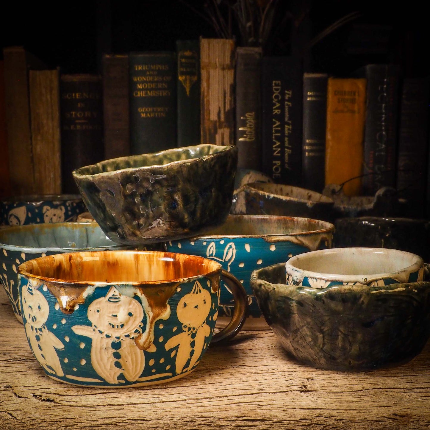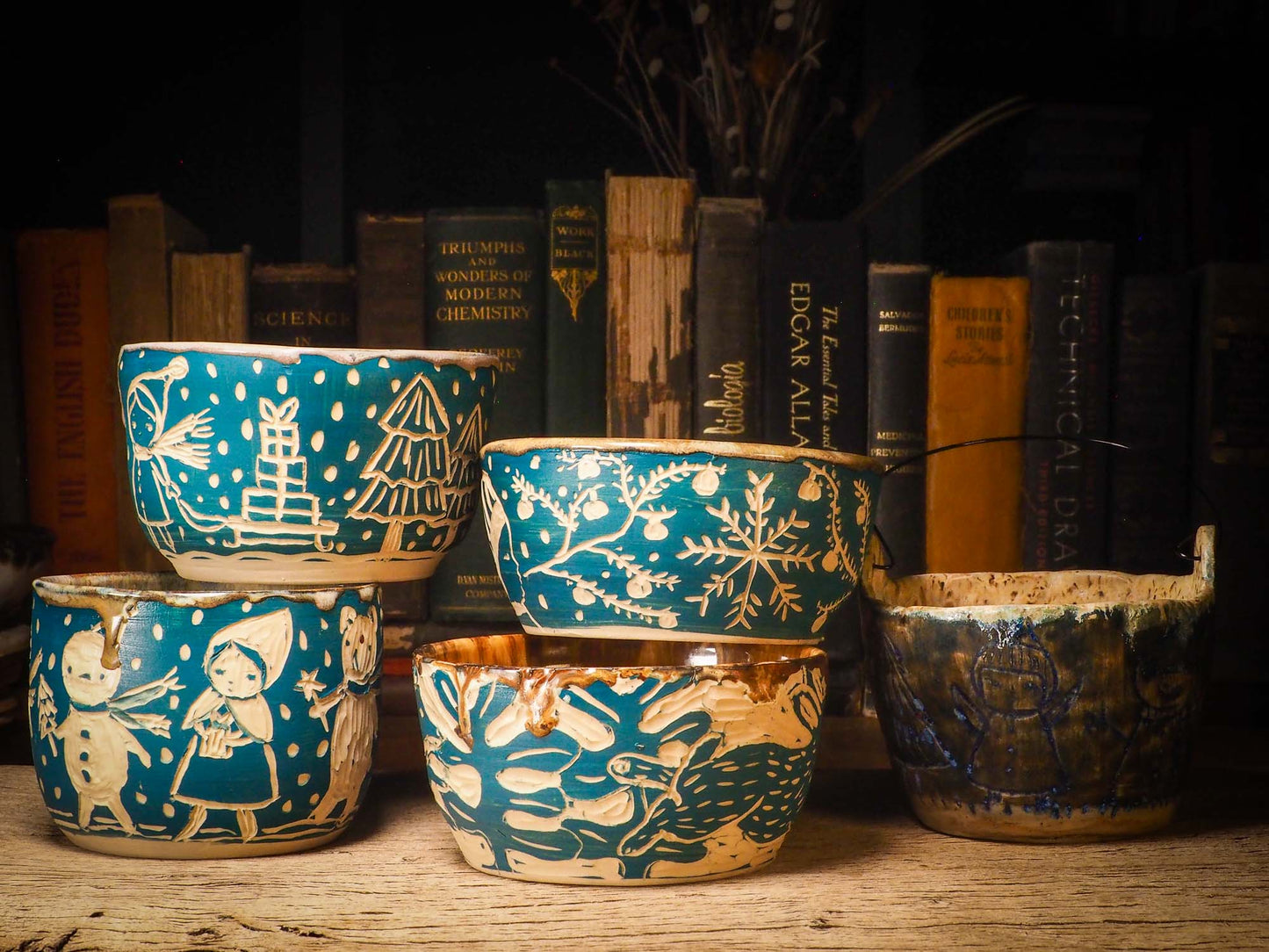 I'm always inspired by Christmas, the holidays and the fond memories I have of them, and this little illustrated holiday ceramic series is no exception. Each one has a little piece of my happy memories embedded in it.