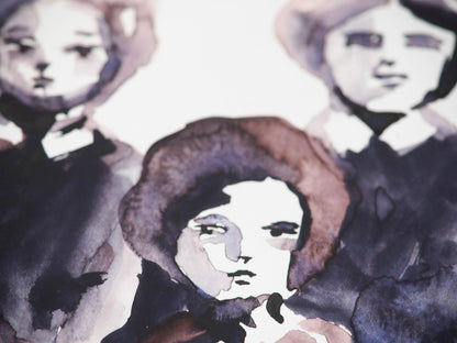I love the way each of the women in this painting has their own personality. I intentionally did not use a lot of detail on it, because it's from an image of a distant past. They are long gone since the original photo was taken, and I like to imagine what their lives were on a time so far now that it's not easy for us to grasp how things were back then.