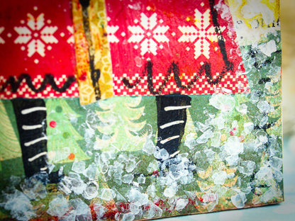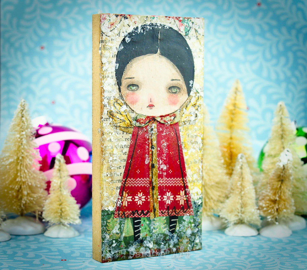I created a series of 10 mini paintings with unique snow angels with wings and paper collage clothes, perfect to decorate your favorite wall in your home. Each painting measures 3x6 inches and it's ready to hang after you open the gift wrapping I included to get you on the holiday mood.