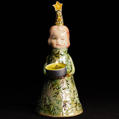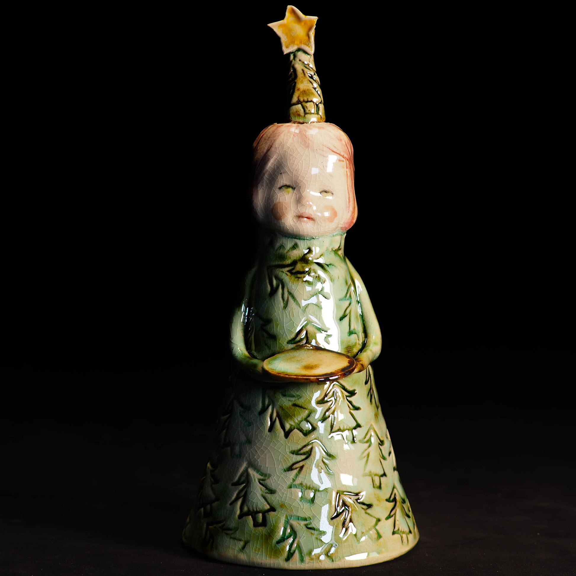 She has a hand sculpted head inspired on the vintage dolls of the beginning of the 19th century, when a doll was a cherished companion that would last for a lifetime. On her body, I painted a winter scene that will make her a perfect holiday decoration just for you!