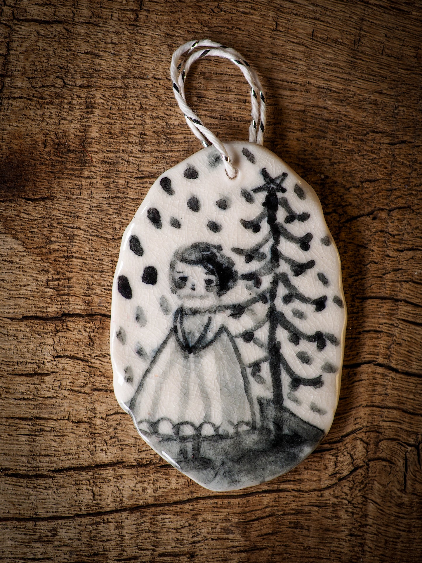 Totally hand made on my studio, each of my ornaments is hand painted, fired twice on a kiln at more than 2000 Degrees, then finished with a beautiful twine hanger.