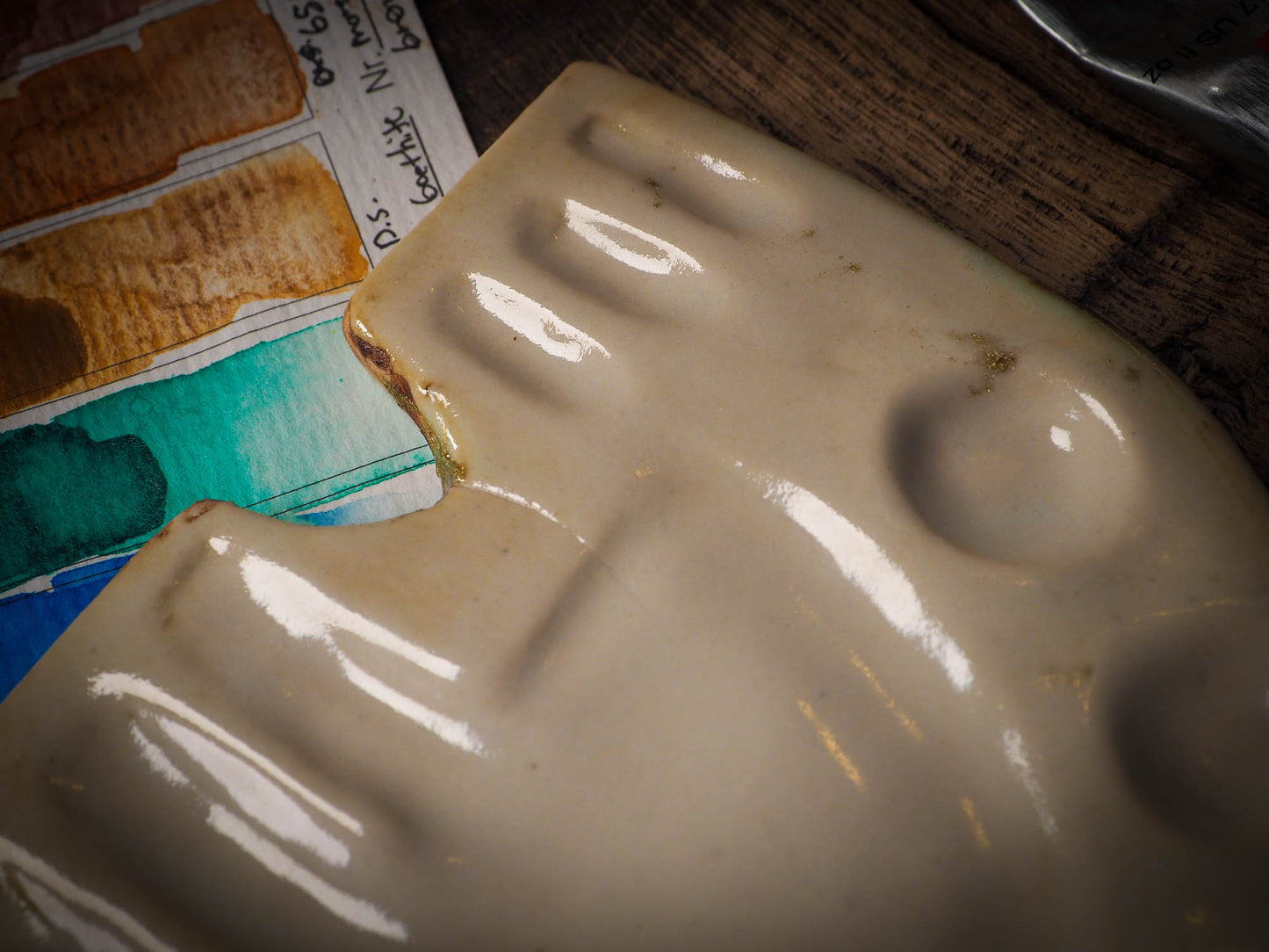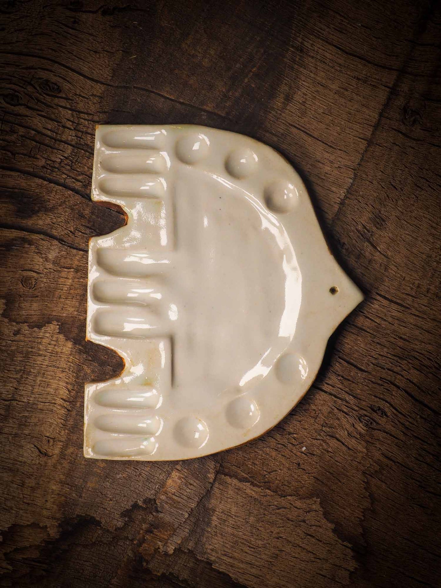 Each artist paint glazed ceramic palette by Idania Salcido, the artist behind Danita Art, is hand sculpted and fired with paint and scratch resistant glazes and with enough paint wells to keep and mix colors at ease.