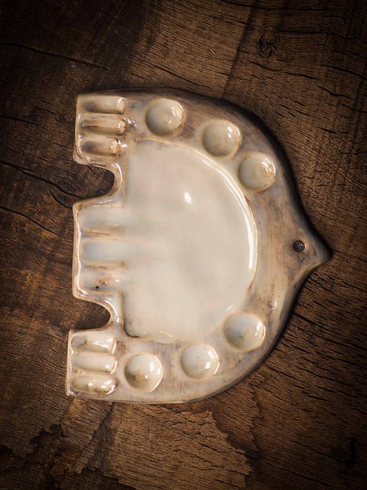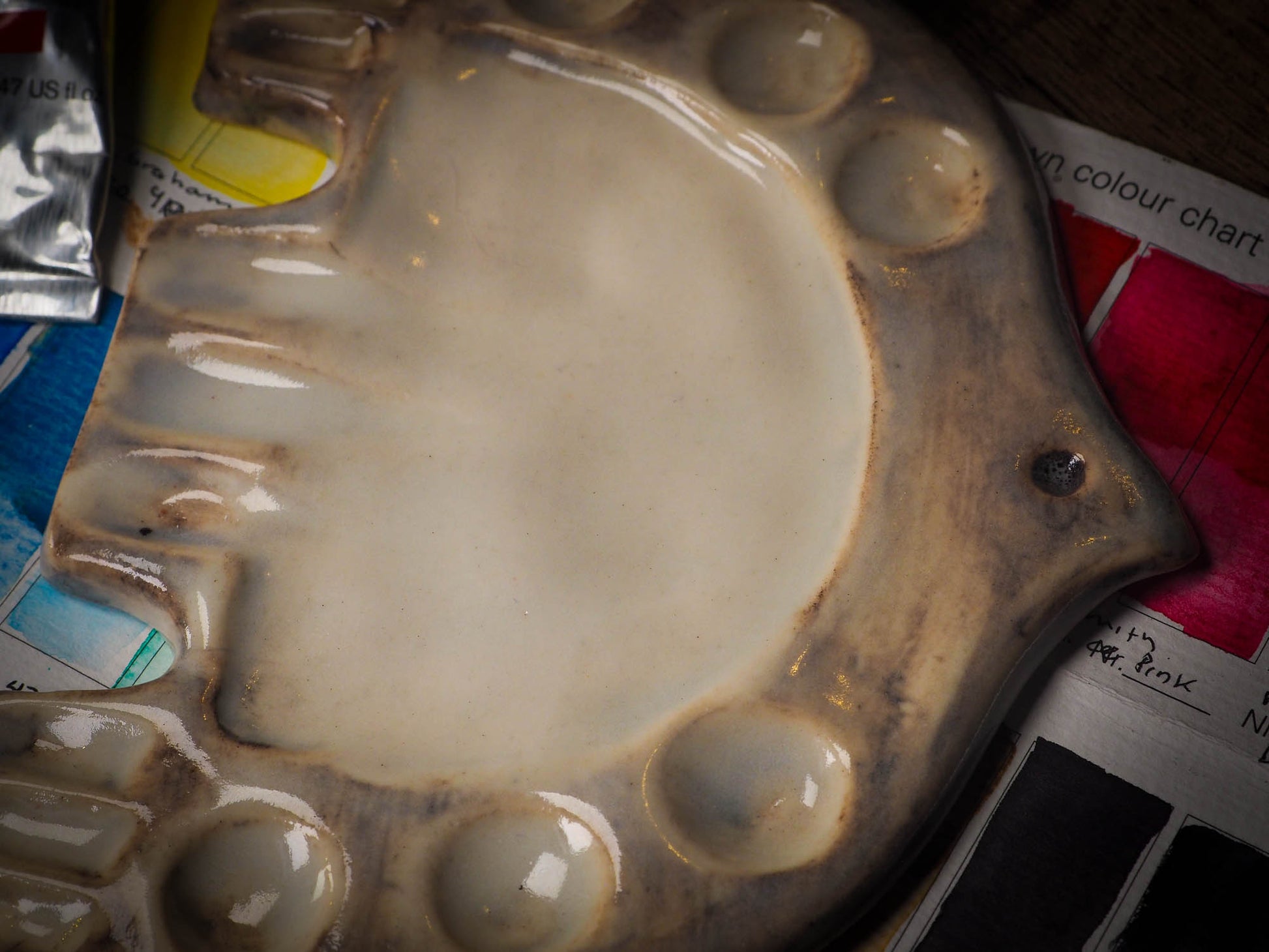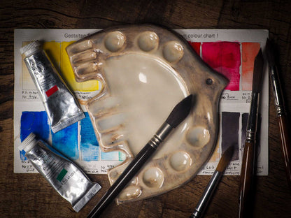 Each artist paint glazed ceramic palette by Idania Salcido, the artist behind Danita Art, is hand sculpted and fired with paint and scratch resistant glazes and with enough paint wells to keep and mix colors at ease.