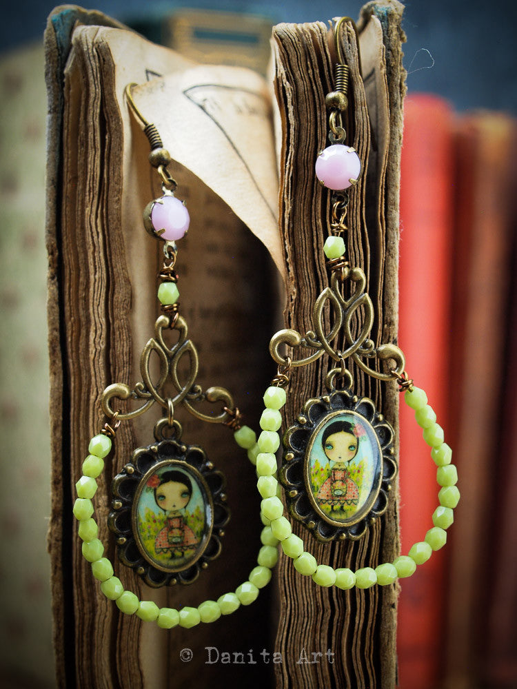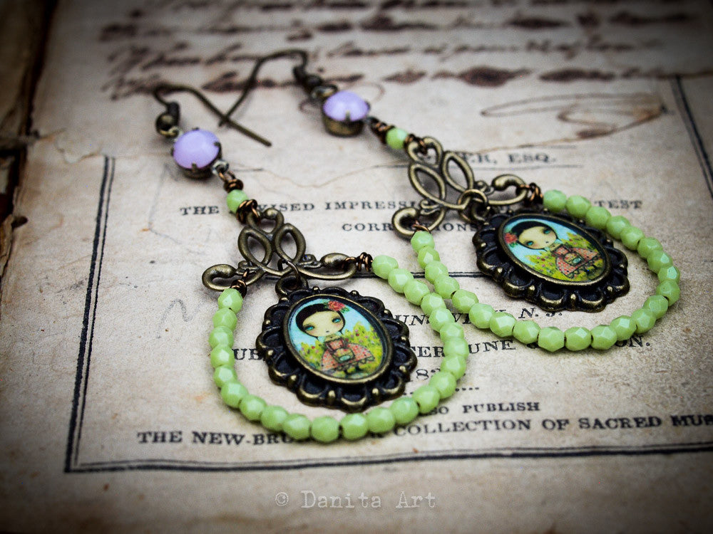 The original painting in these beautiful earrings was a commissioned painting with a beautiful story, and now I am offering them as a hand crafted earring set.