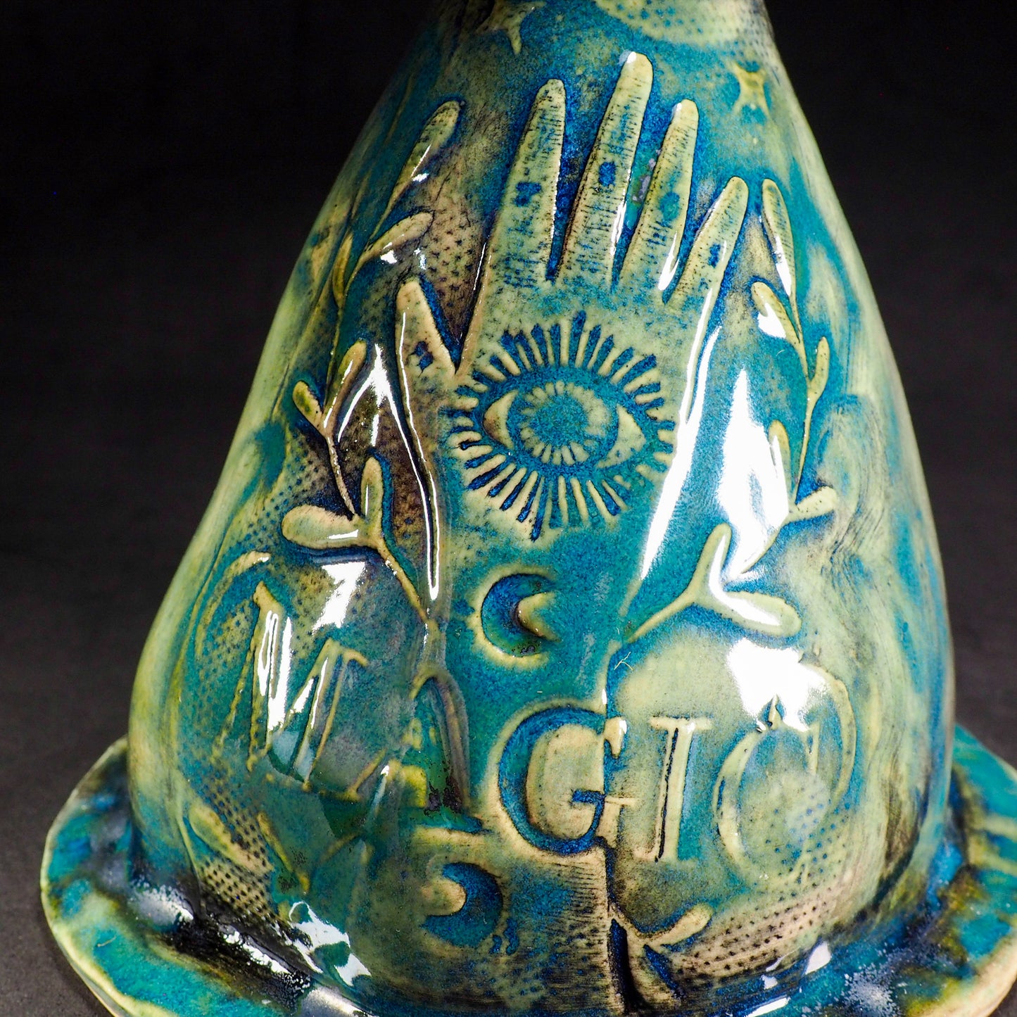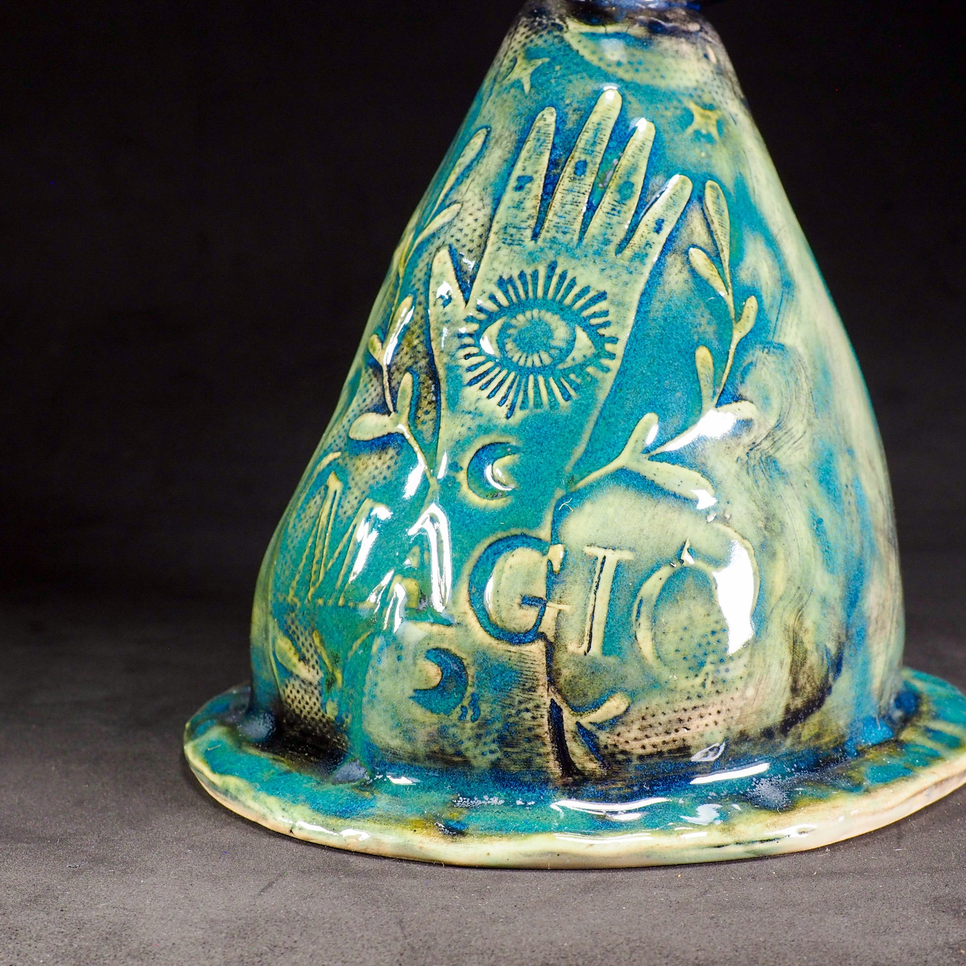 You are looking at an original handmade ceramic vase by Idania Salcido, the artist behind Danita Art. Each one is a unique work of art on itself, inspired and designed by me, Danita Art. It is a homage to the mystical world, hand built by me, glazed and fired on my old school kiln.