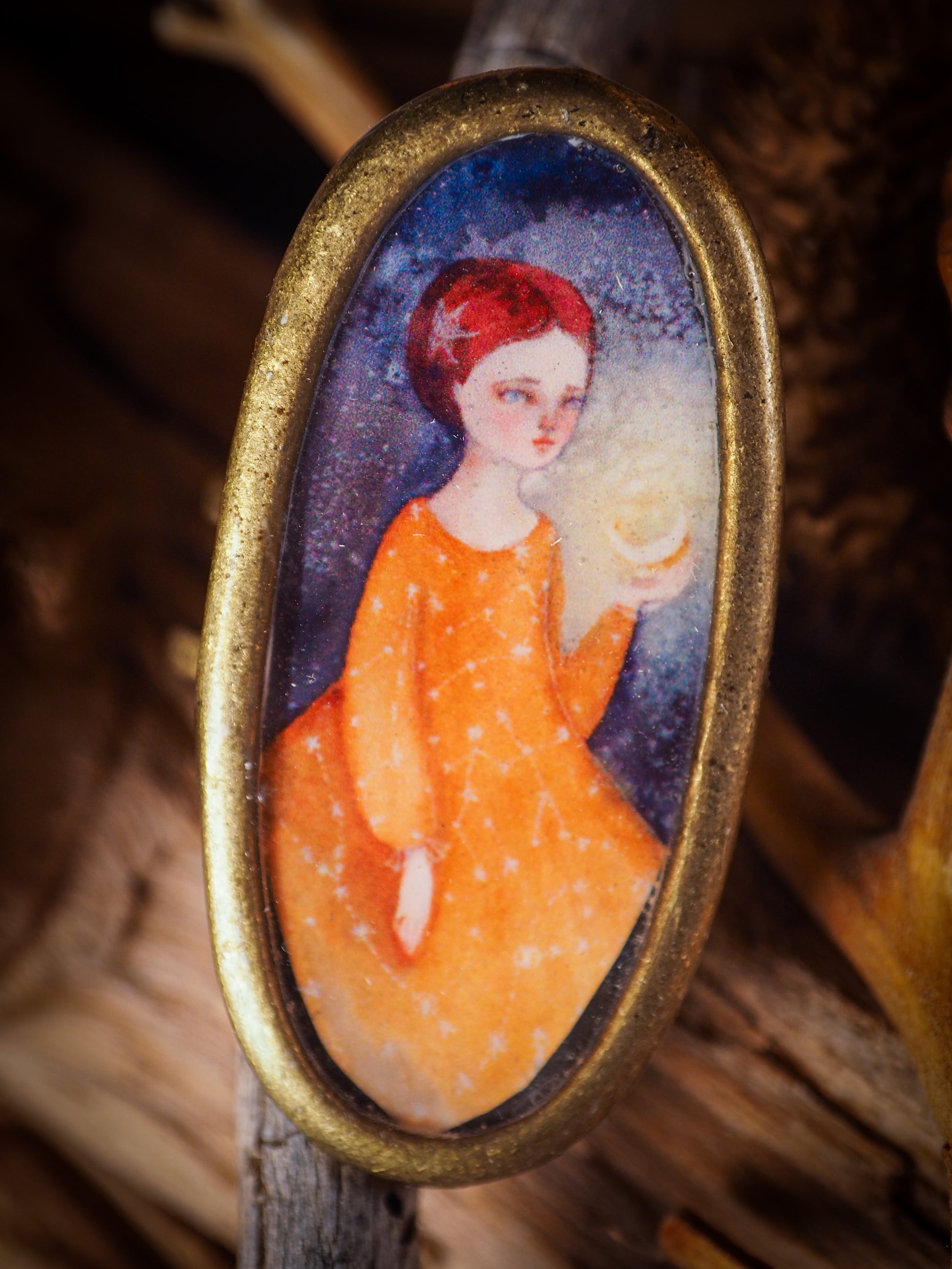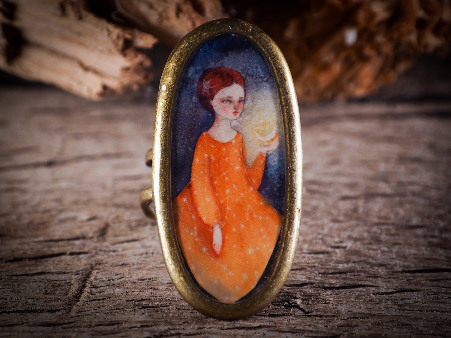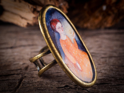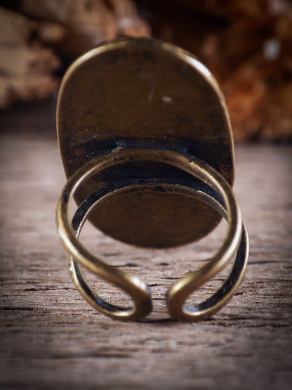 This ring is adjustable to different finger sizes and the oval image will create a statement of boldness and confidence that will draw looks and attention to your hands when you wear this powerful little piece with one of my favorite image.