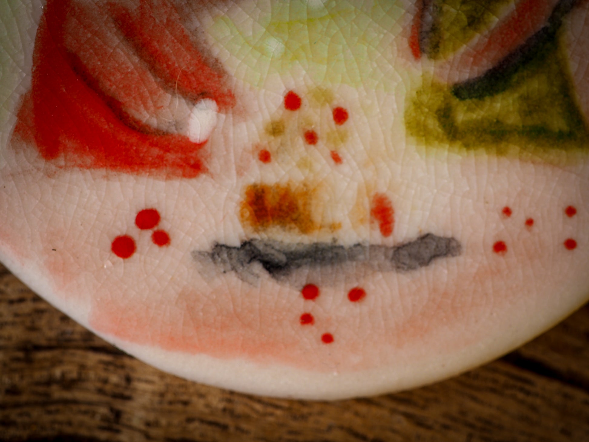 Totally hand made on my studio, each of my ornaments is hand painted, fired twice on a kiln at more than 2000 Degrees, then finished with a beautiful twine hanger.