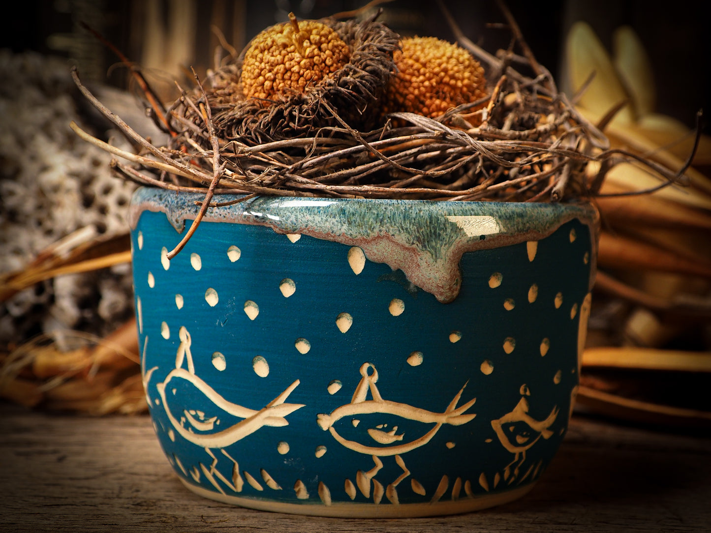 Each original Danita Art ceramics piece is unique and special and cannot be repeated. You are getting a one of a kind work of art to display, or use it as one of your favorite home decorations.
