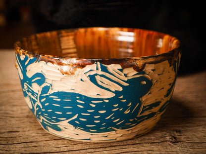 You are looking at original handmade ceramic Christmas and Holiday fire glazed ceramic piece by Idania Salcido, the artist behind Danita Art. Hand made with glazed stoneware at Idania's ceramic studio, the bowl measures approx. 4 1/2 x 4 1/2 x 2 1/2 inches tall and it is hand painted by the artist.