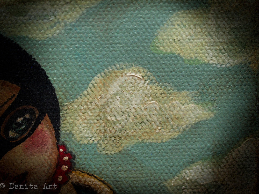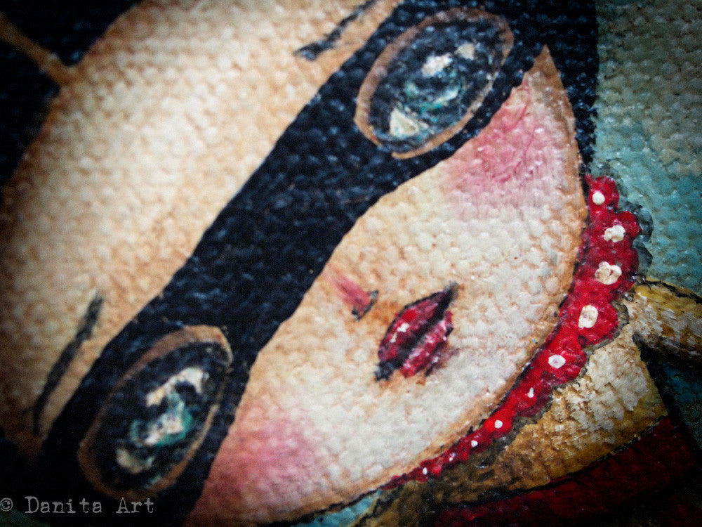 Take a look at the closeup details to discover rich textures, delicate brushstrokes and beautiful, expressive and soulful eyes. Everything combines to create a one of a kind piece of art made with acrylics and a ton of love.