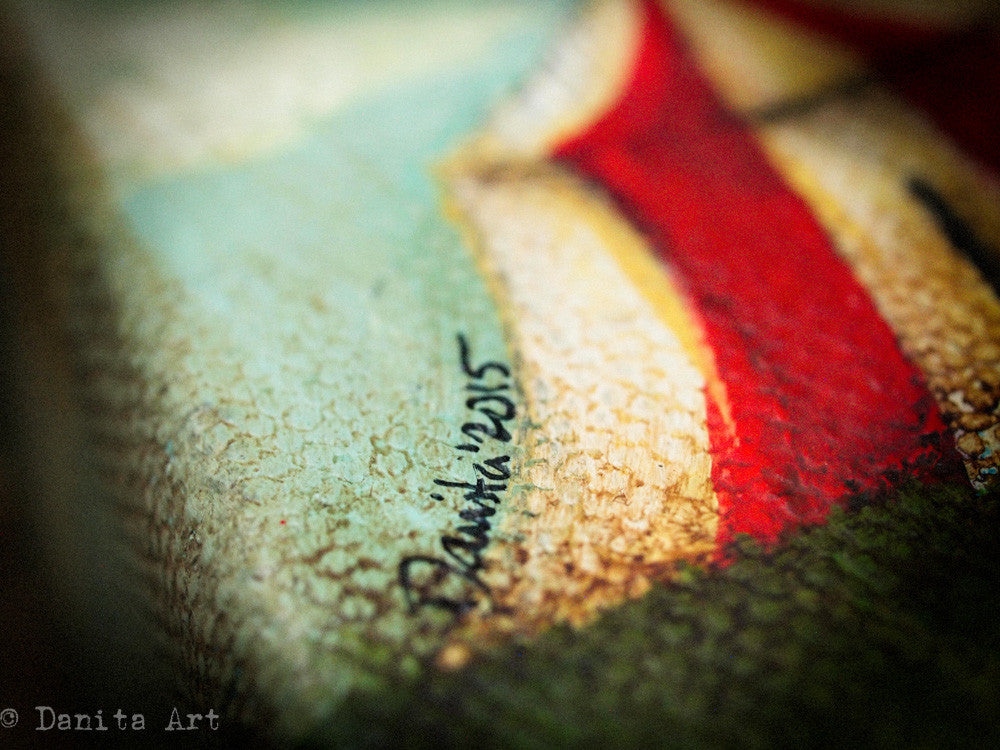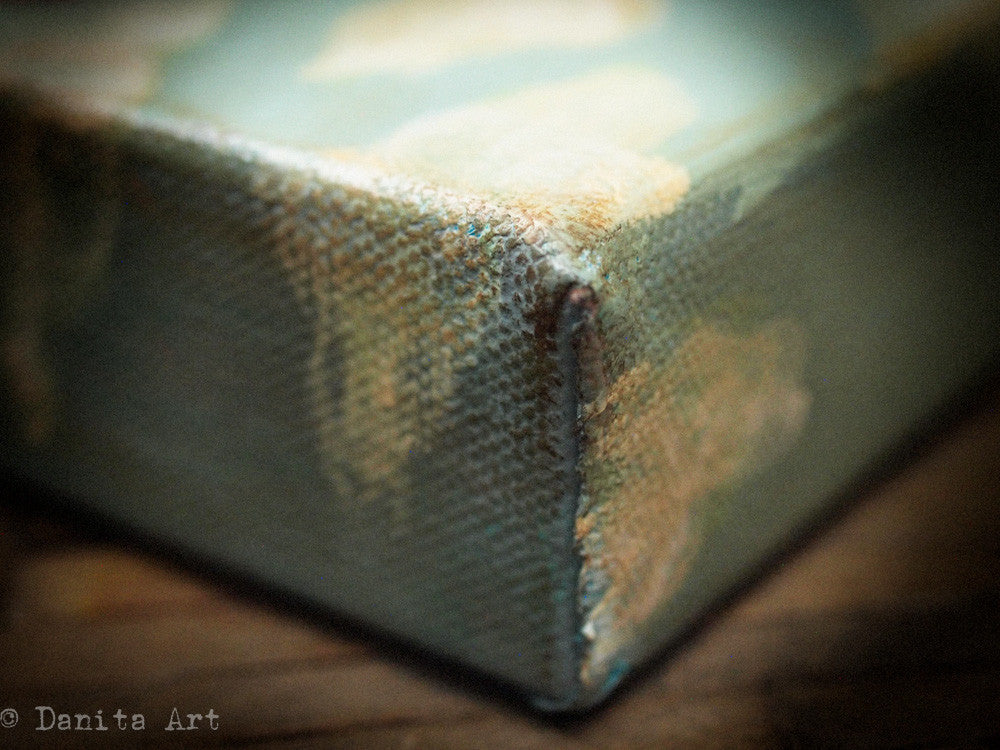 This is an original painting by me, mixed media artist Danita Art. Made on a 6"x6" canvas, the painting has a mix of elements and patina that creates a beautiful vintage and weathered ambiance that gives this original piece a mysterious look.