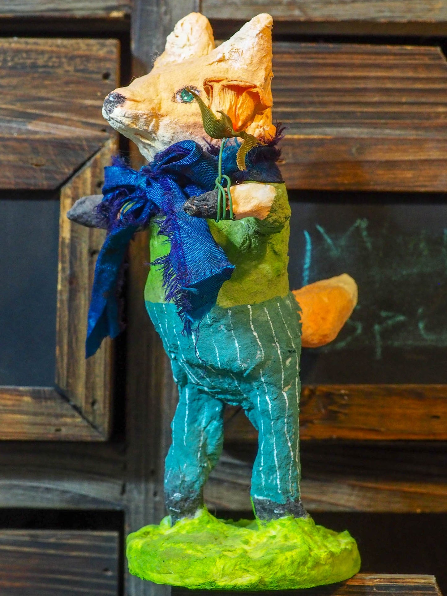 THE FLOWER FOX - An original mixed media spun cotton sculpture by Danita Art