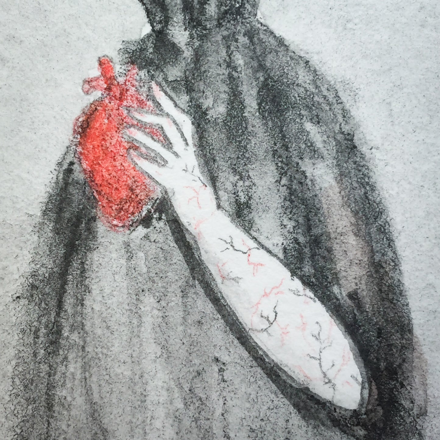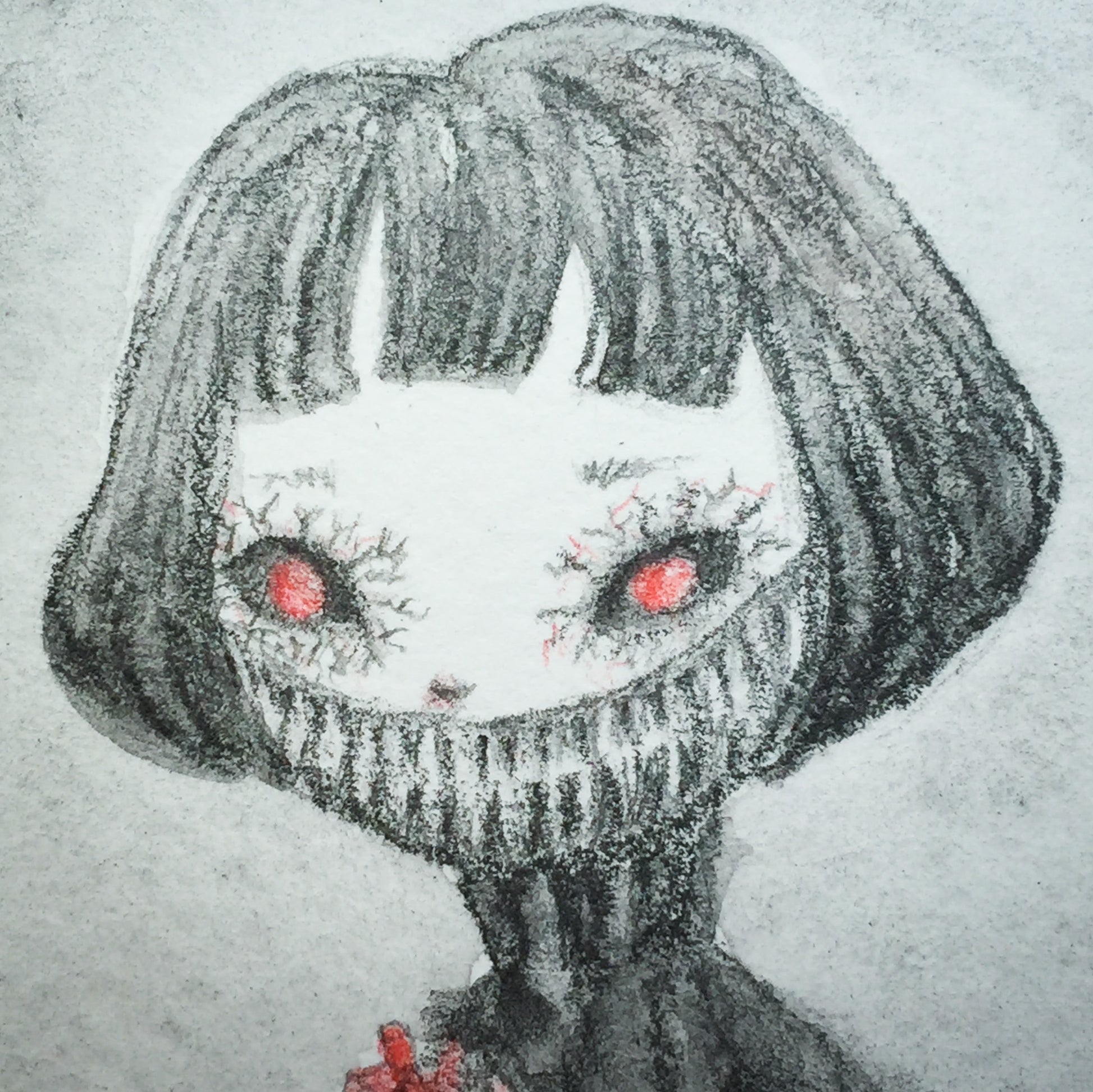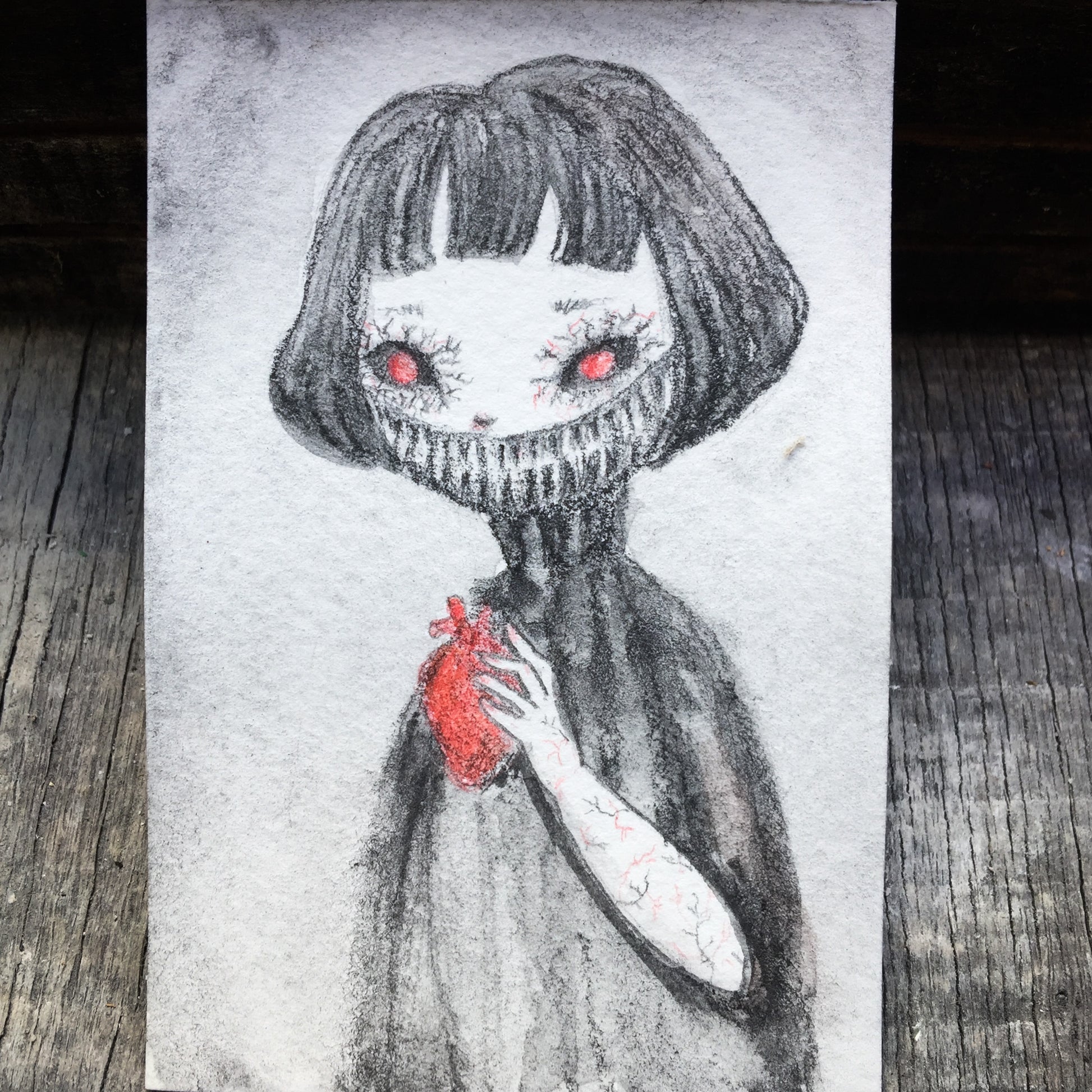 This is one of the scariest creatures I can think of. Straight from the deepest corners of my Danita nightmares, I let Darknita loose to illustrate a monster this time using only a black and a red watercolor pencil and a brush.