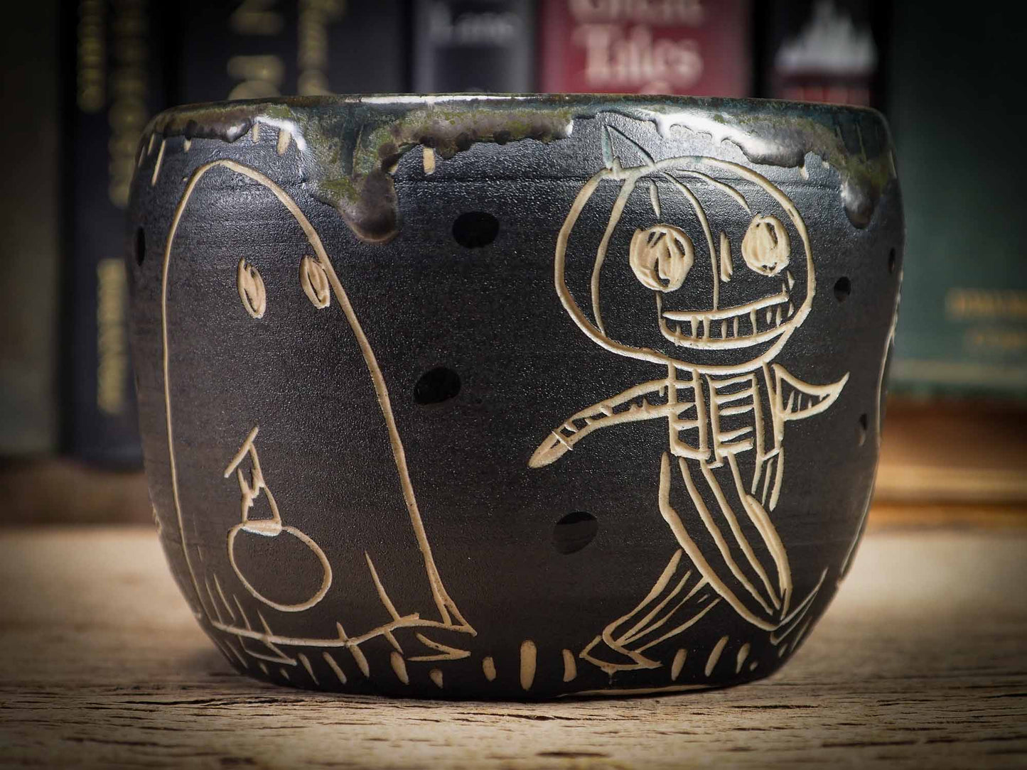 An original Halloween ceramic bowl by Idania Salcido, the artist behind Danita Art.