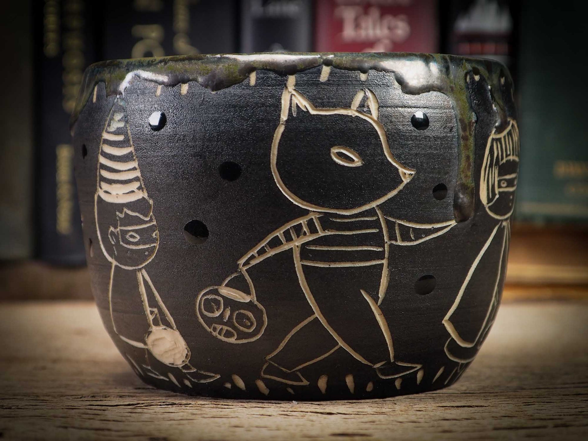 Perfect to enjoy your Halloween booty, or maybe a little ice cream and fruit and can be used as a pet cat bowl. My cats love theirs! It's 100% Food safe ceramic, hand wash only.