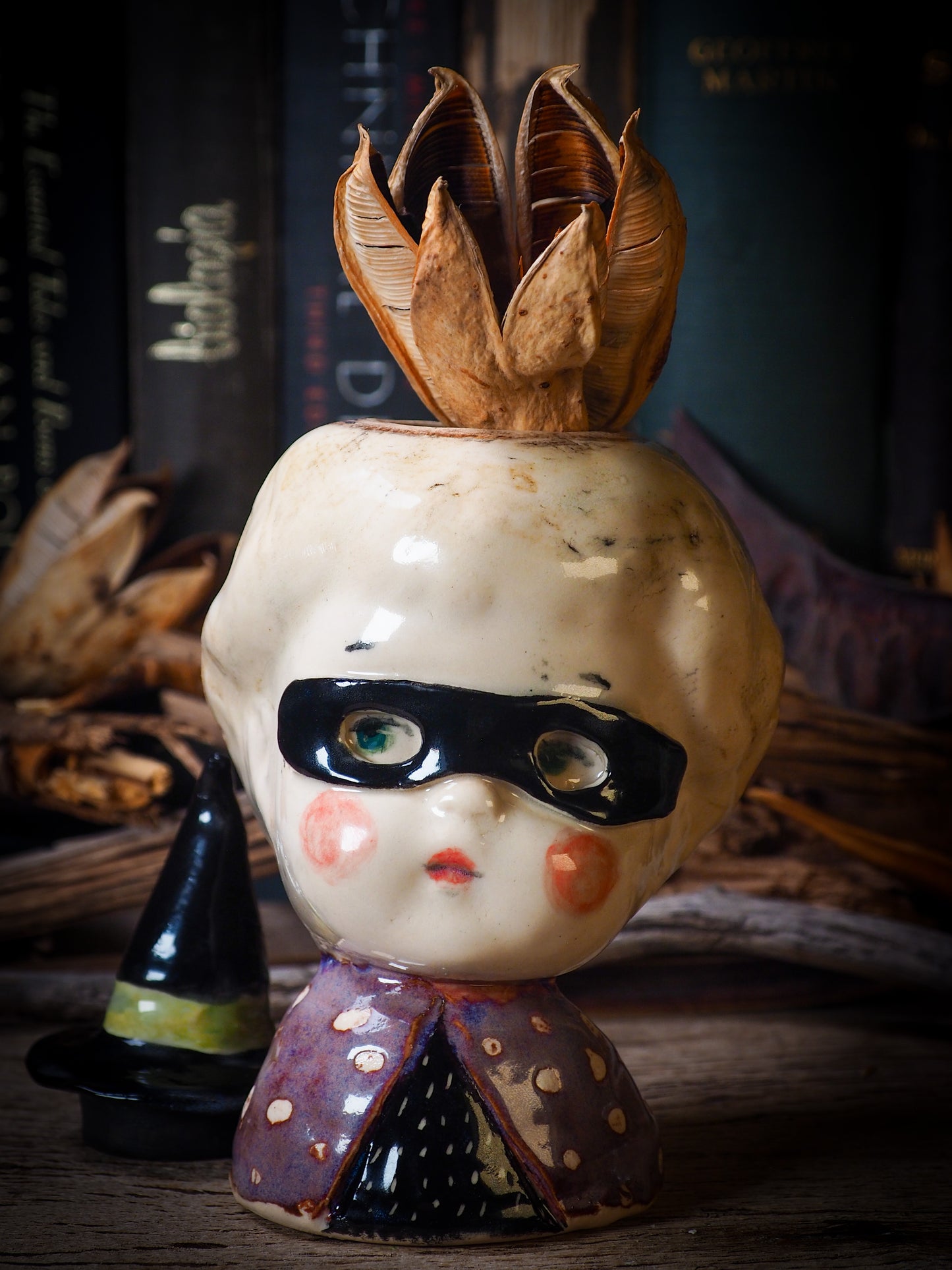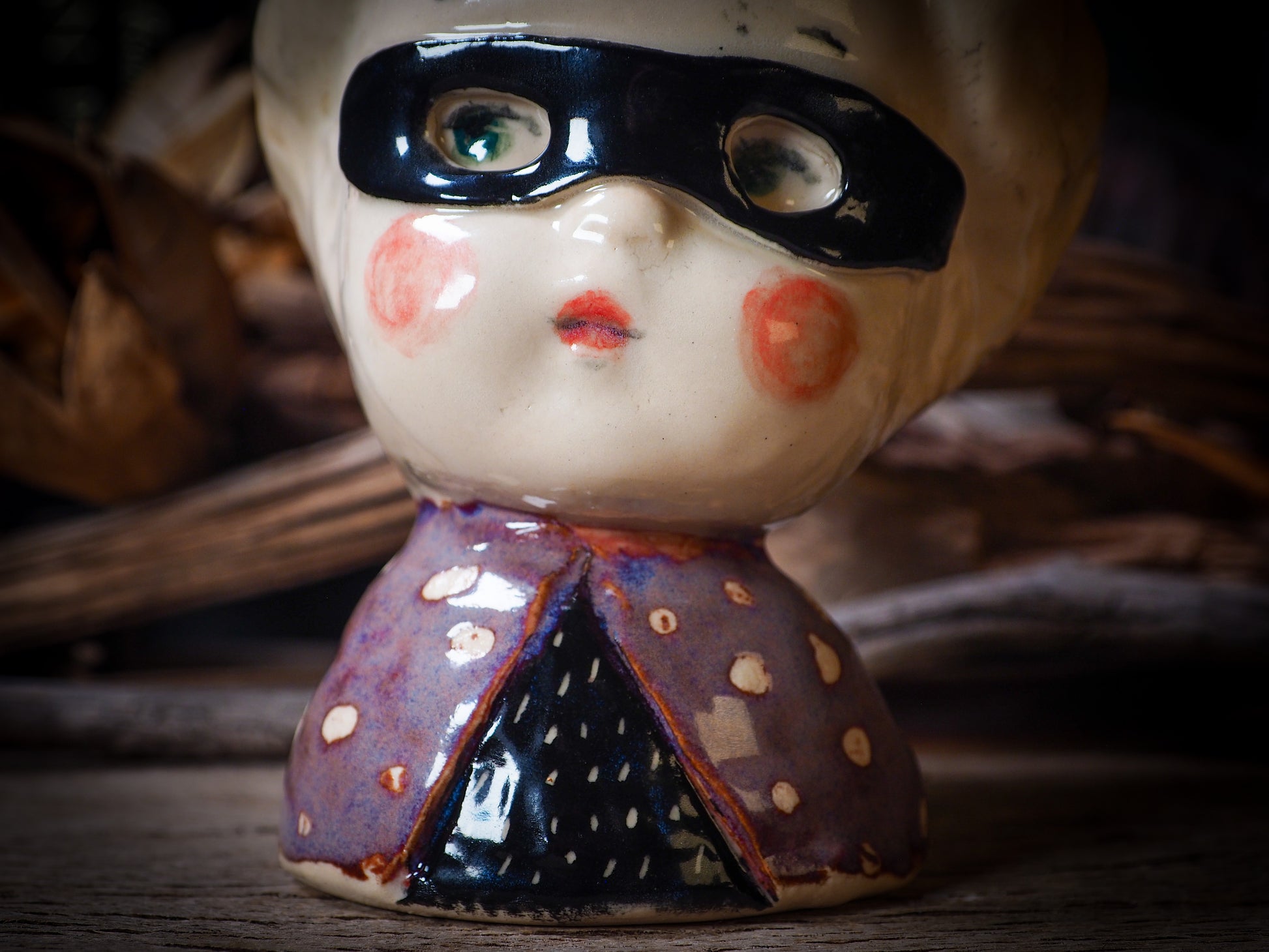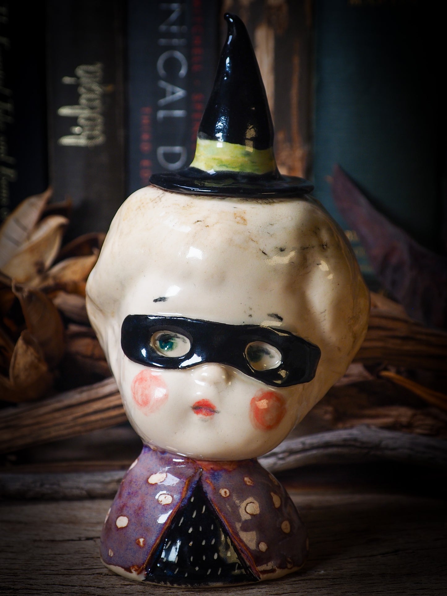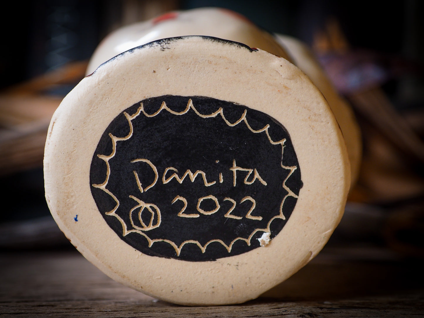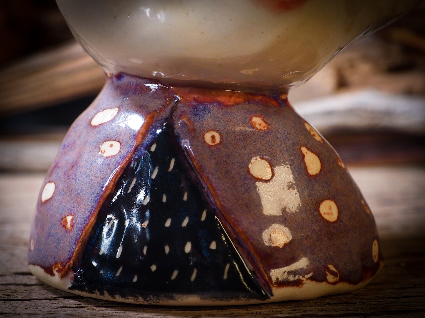 An original, fire glazed ceramic coffee mug by Idania Salcido, Danita Art. Inspired by Halloween, Danita created a beautiful ceramic container for your favorite pumpkin spice coffee, a warm cup of tea or maybe to keep your favorite sweets to enjoy with your favorite trick-or-treaters.