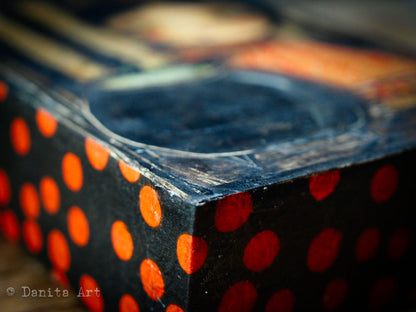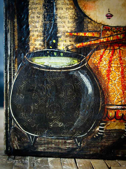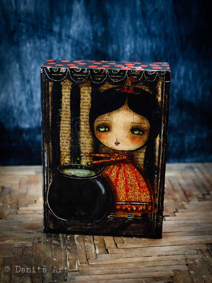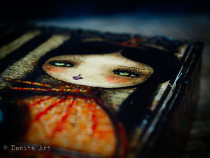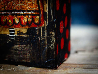 This original painting by Danita is made on an 5 x 7 inches wood panel and the painting and decorations going over the edge of the painting.
