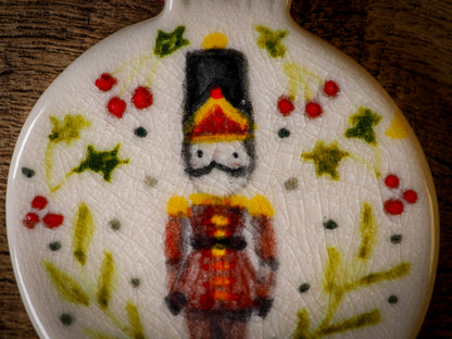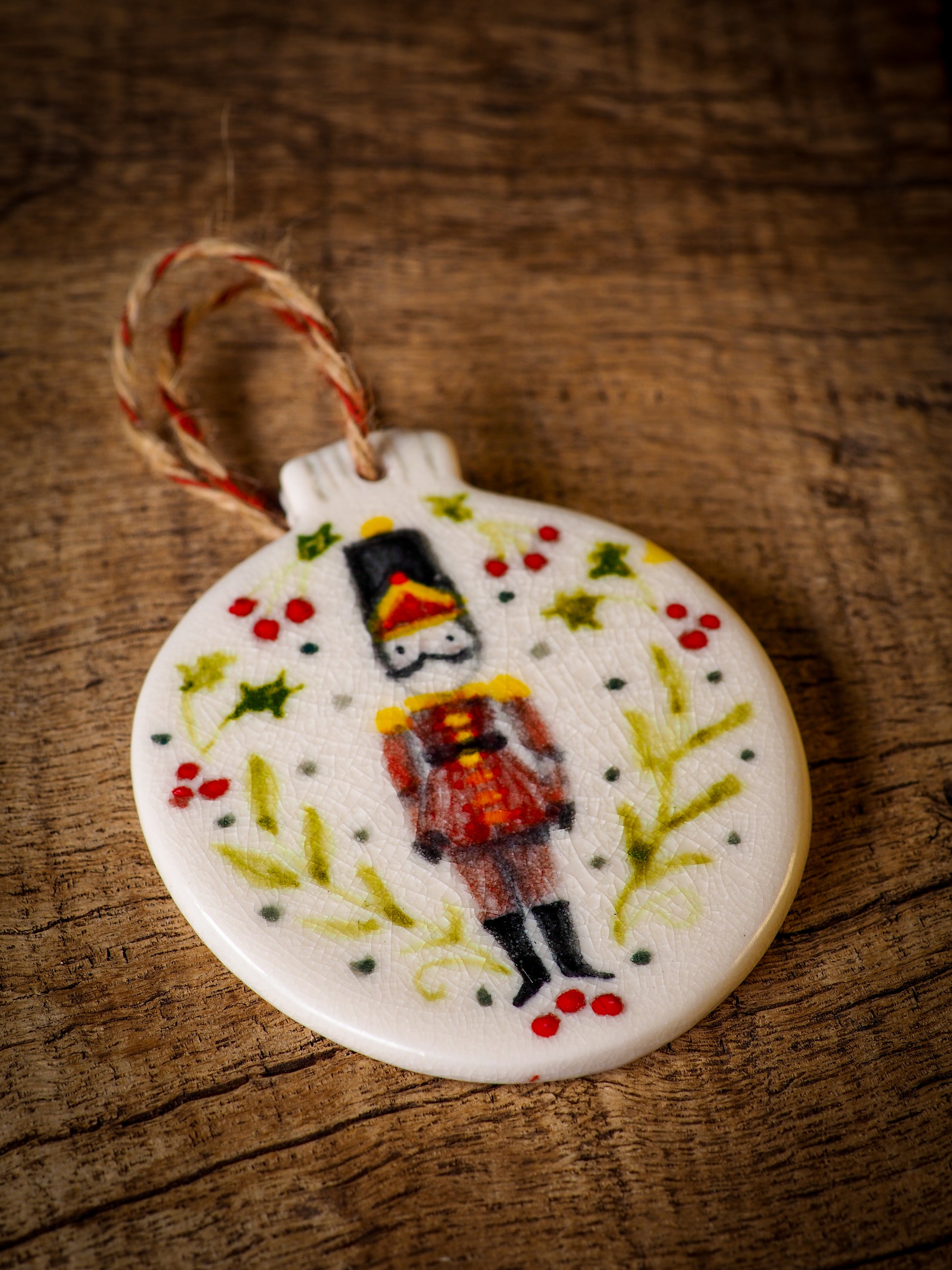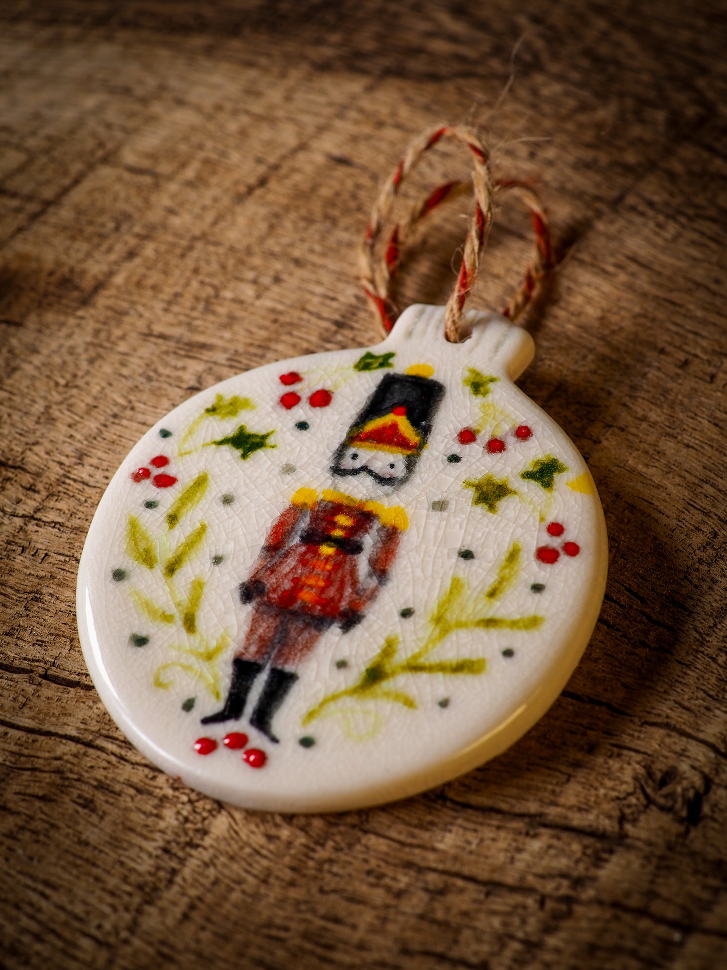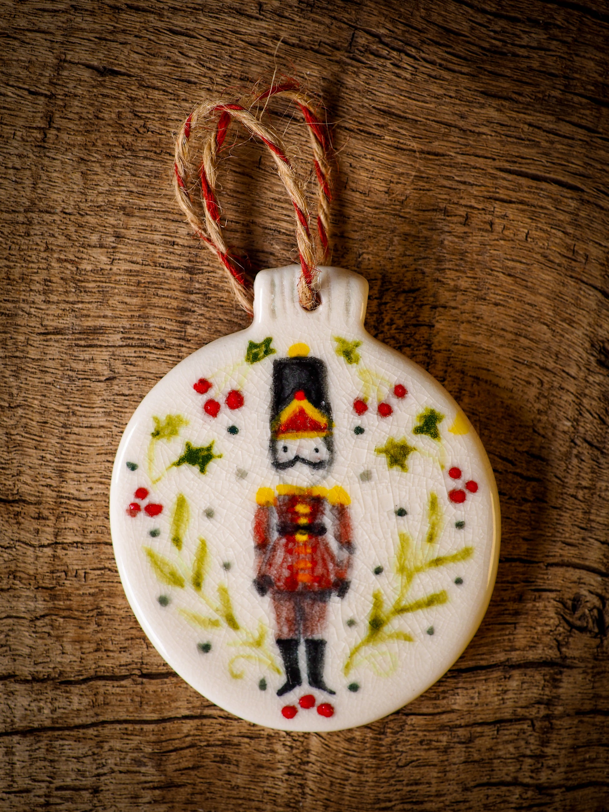 Totally hand made on my studio, each of my ornaments is hand painted, fired twice on a kiln at more than 2000 Degrees, then finished with a beautiful twine hanger.