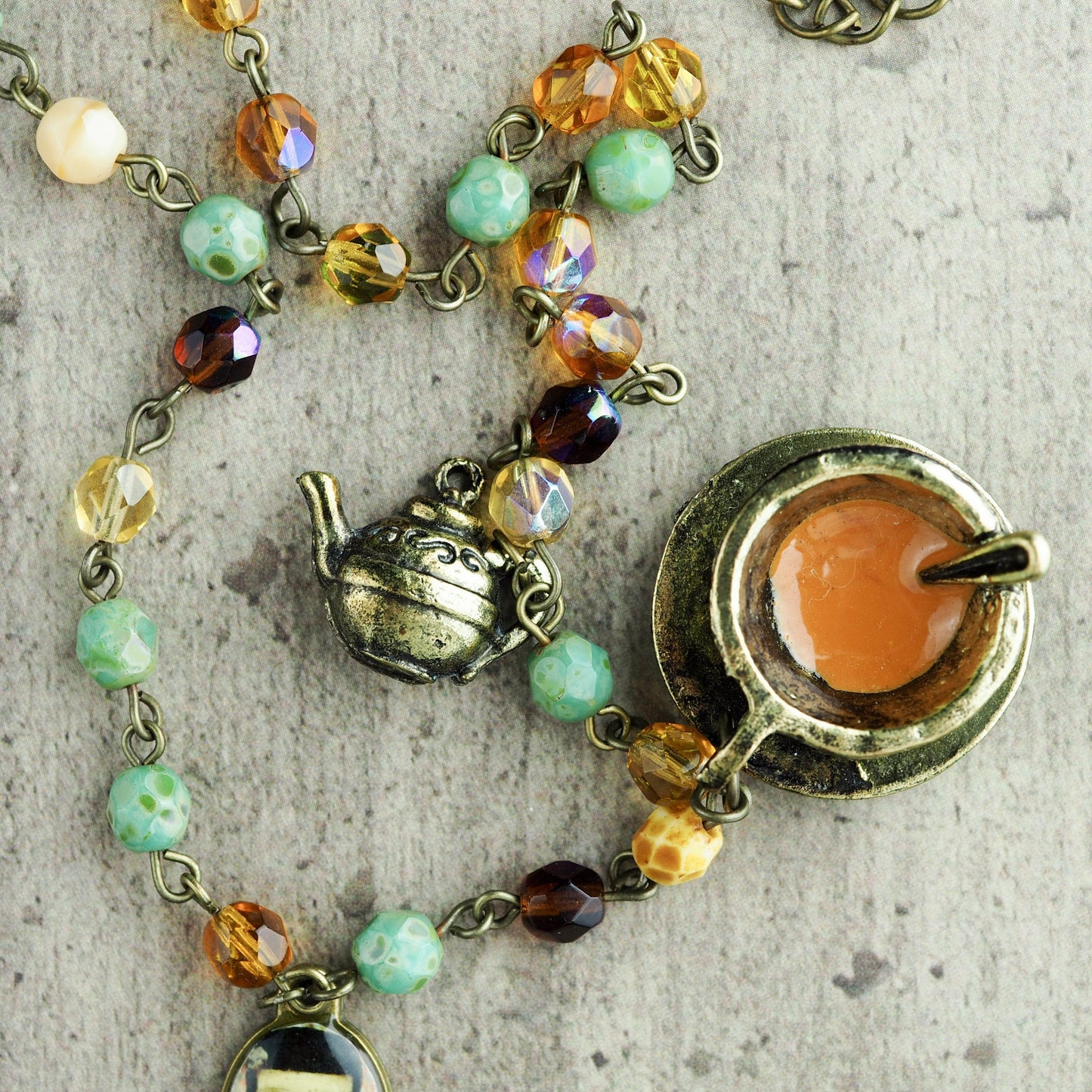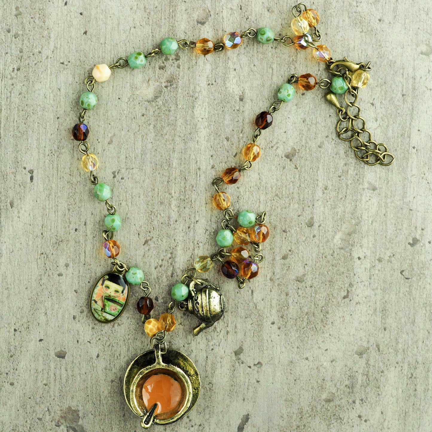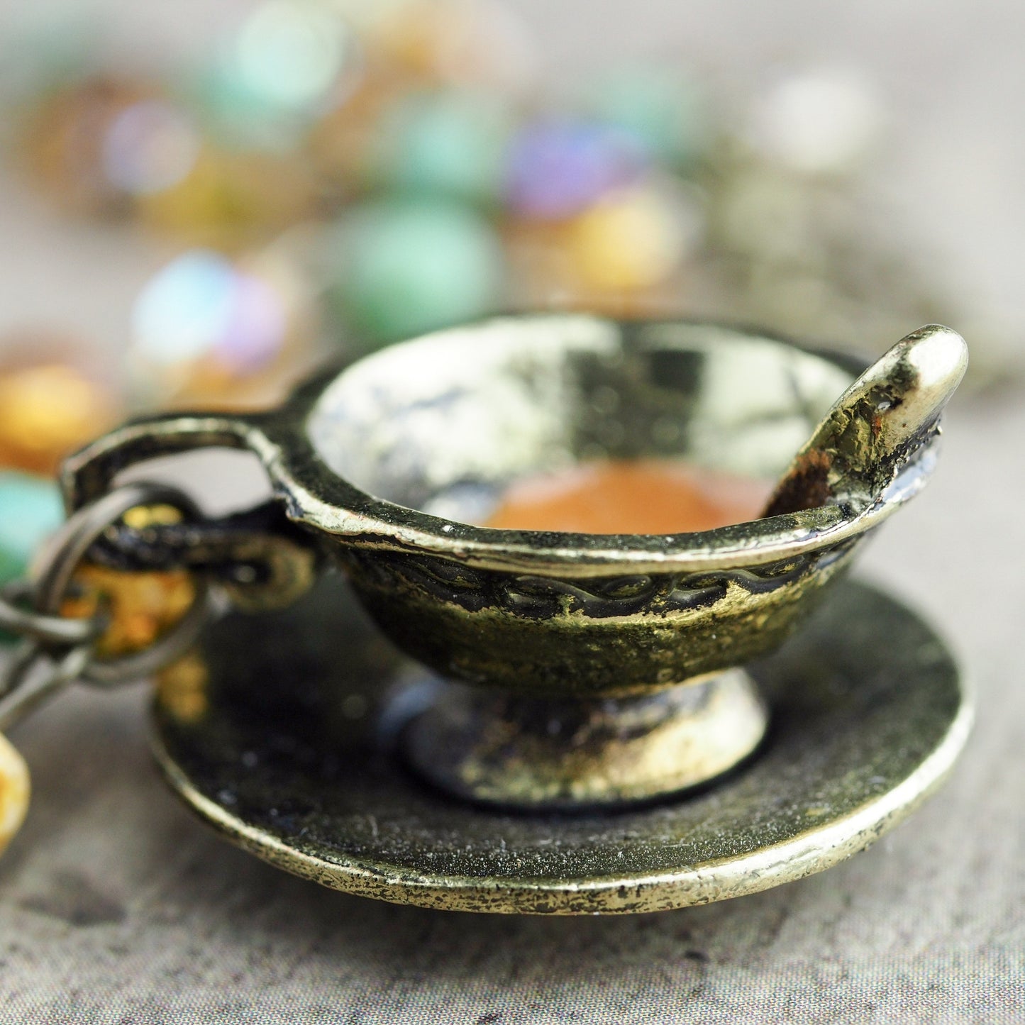 This little necklace was made by me, Danita. I used a little golden tea cup pendant I found from an old necklace and decided to upcycle it.