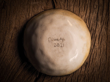 You are looking at original handmade ceramic Christmas and Holiday fire glazed ceramic piece by Idania Salcido, the artist behind Danita Art. Hand made with glazed stoneware at Idania's ceramic studio, the bowl measures approx. 3 x 3 x 1.5 inches tall and it is hand painted by the artist.