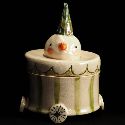 This little holiday elf will keep your most precious secrets and trinkets safe and away from prying eyes until you remove the lid. In the meantime, he will be just a cute unsuspecting box with wheels decorating your home during the holiday season.