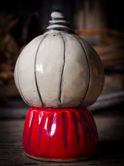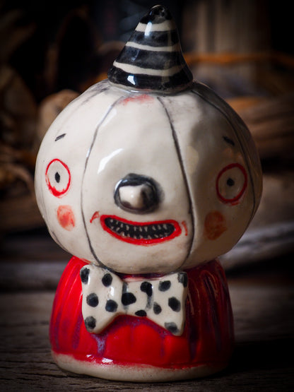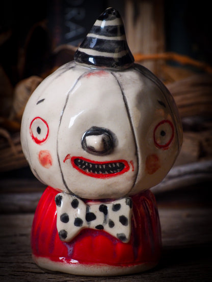 An original, fire glazed ceramic coffee mug by Idania Salcido, Danita Art. Inspired by Halloween, Danita created a beautiful ceramic container for your favorite pumpkin spice coffee, a warm cup of tea or maybe to keep your favorite sweets to enjoy with your favorite trick-or-treaters.