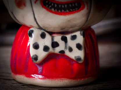 The mug is hand carved with Halloween motives like ghosts, skeletons, witches, ghouls, black cats and more come to life as hand carvings on the sides, with an inside covered in a beautiful food safe glaze with intricate swirls of colors to discover as you enjoy your favorite drink on it.