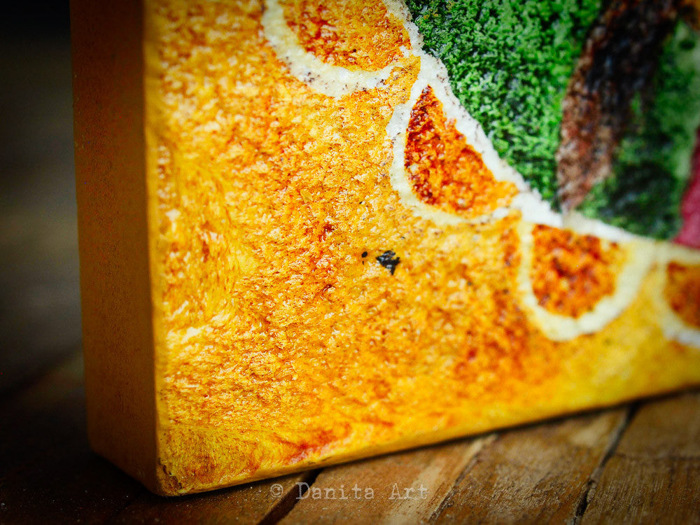 The rough surface I used on the wood block gives this painting a very special quality that adds to the facial features of each of the girls.