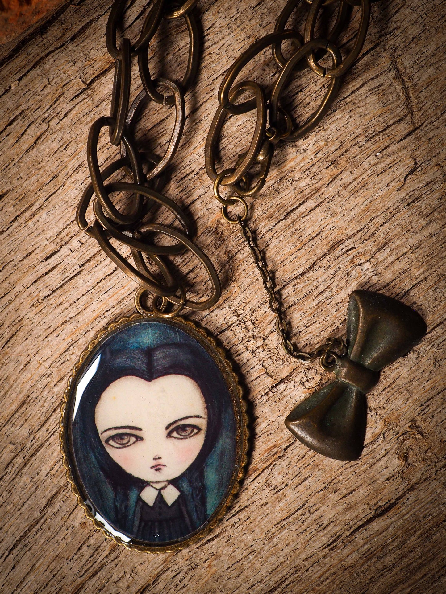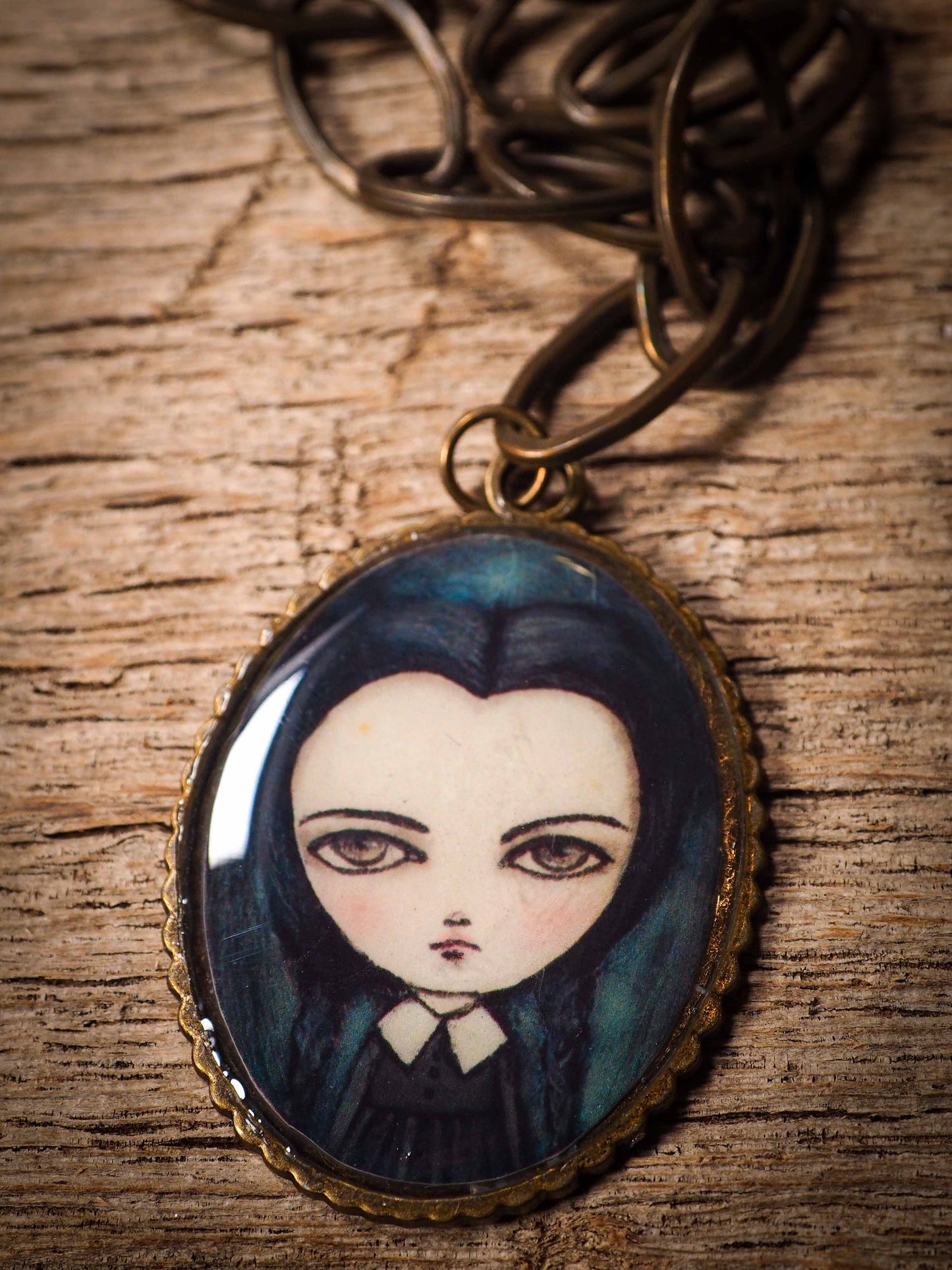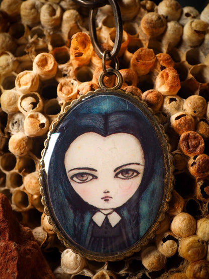 It has a reproduction of an original halloween illustration by Danita, covered in resin.