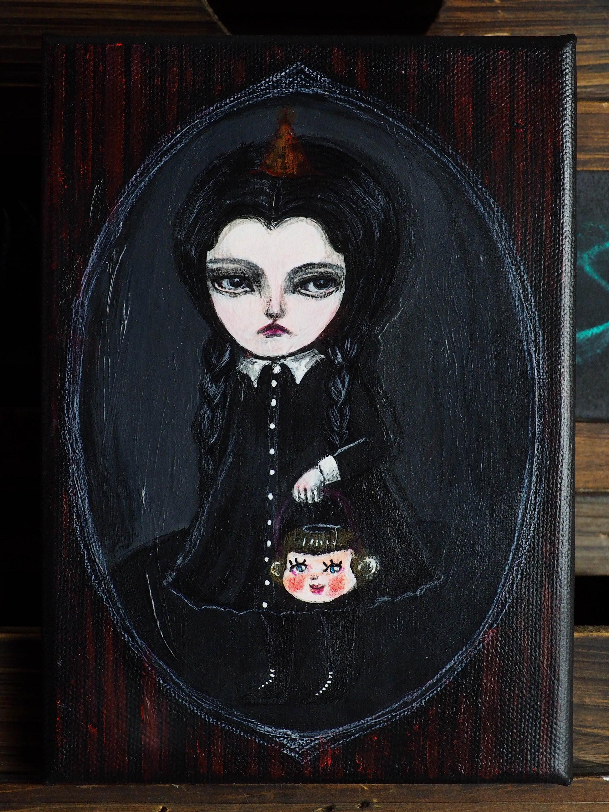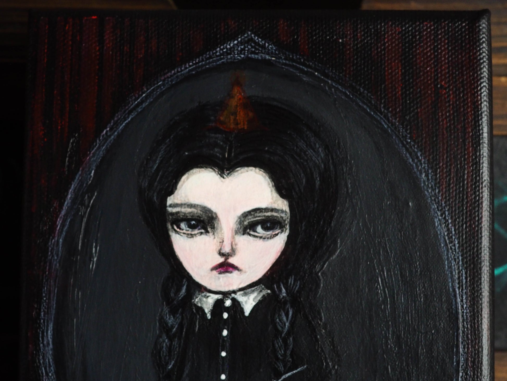 WEDNESDAY ADDAMS - Original Danita Art painting, great Halloween decor for the Addams Family fans.