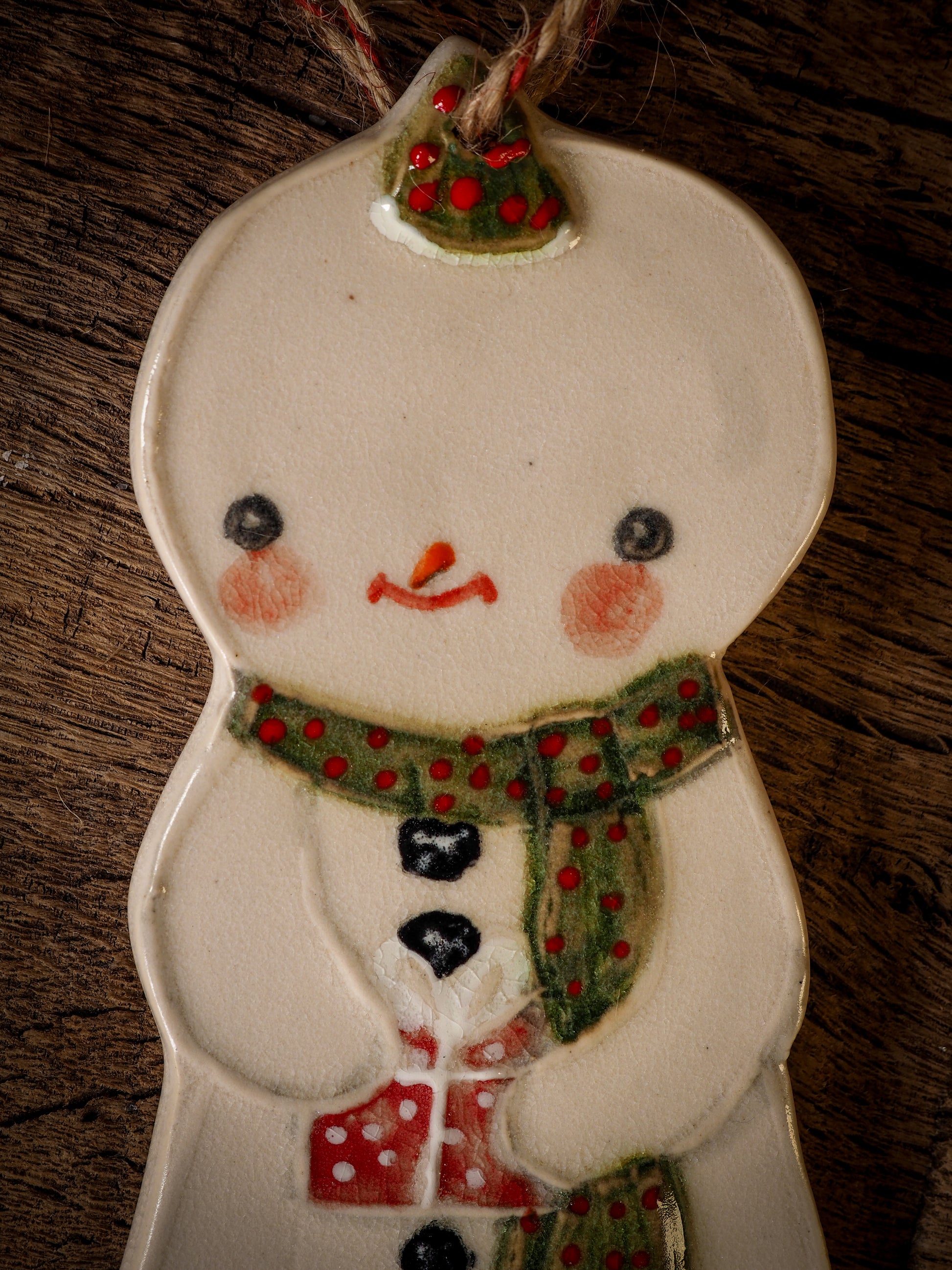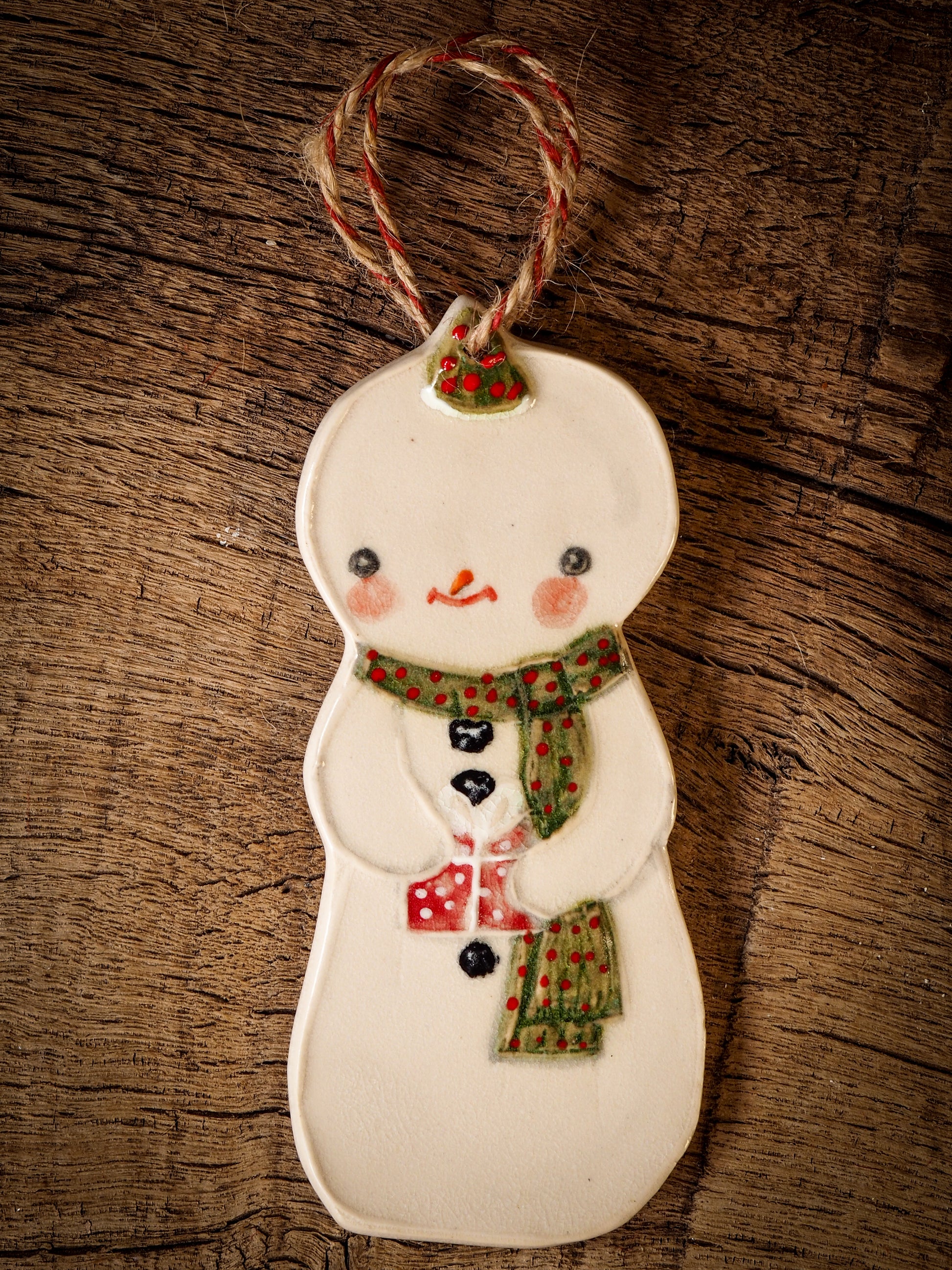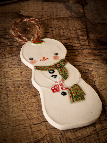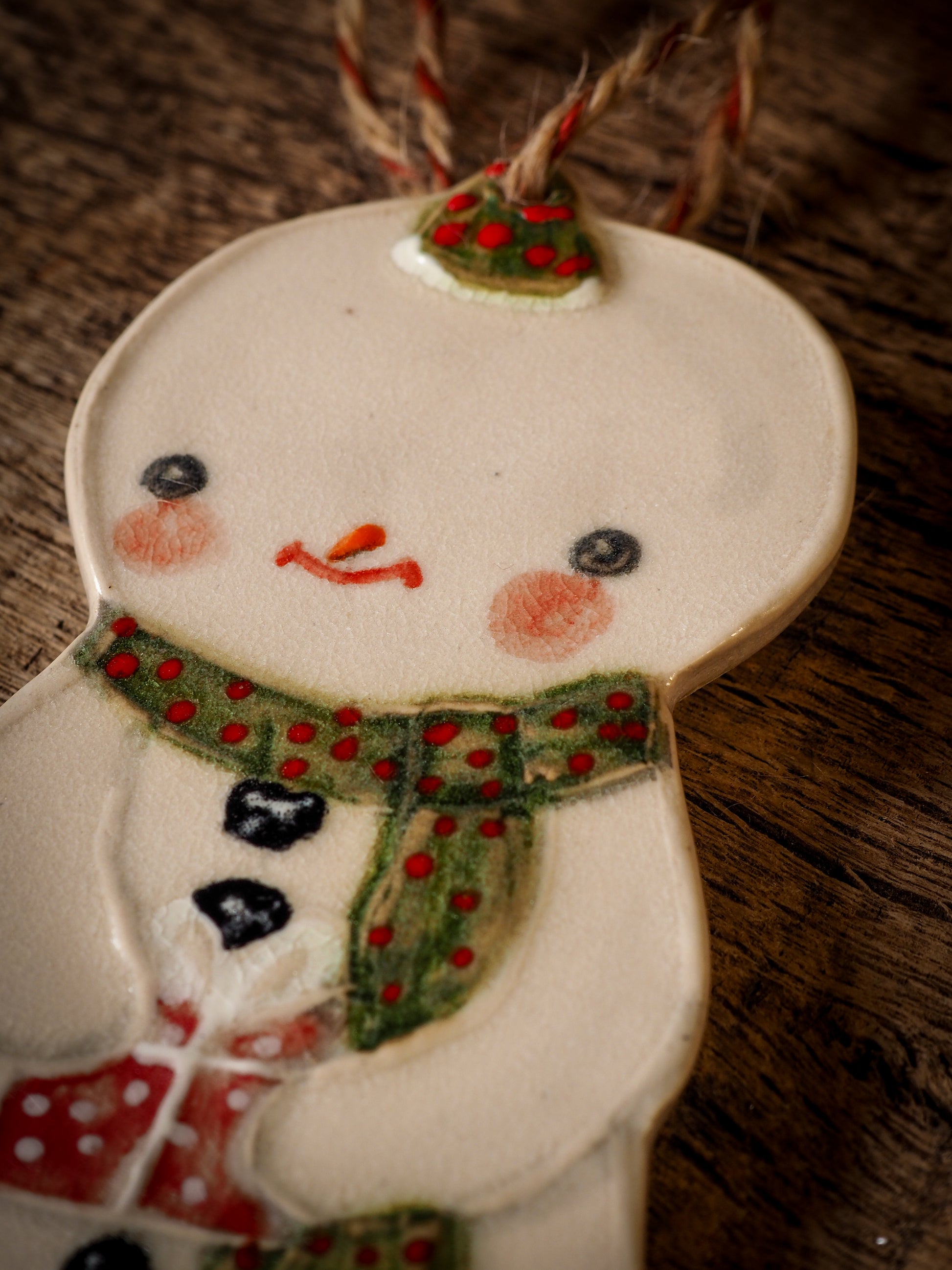 Totally hand made on my studio, each of my ornaments is hand painted, fired twice on a kiln at more than 2000 Degrees, then finished with a beautiful twine hanger.