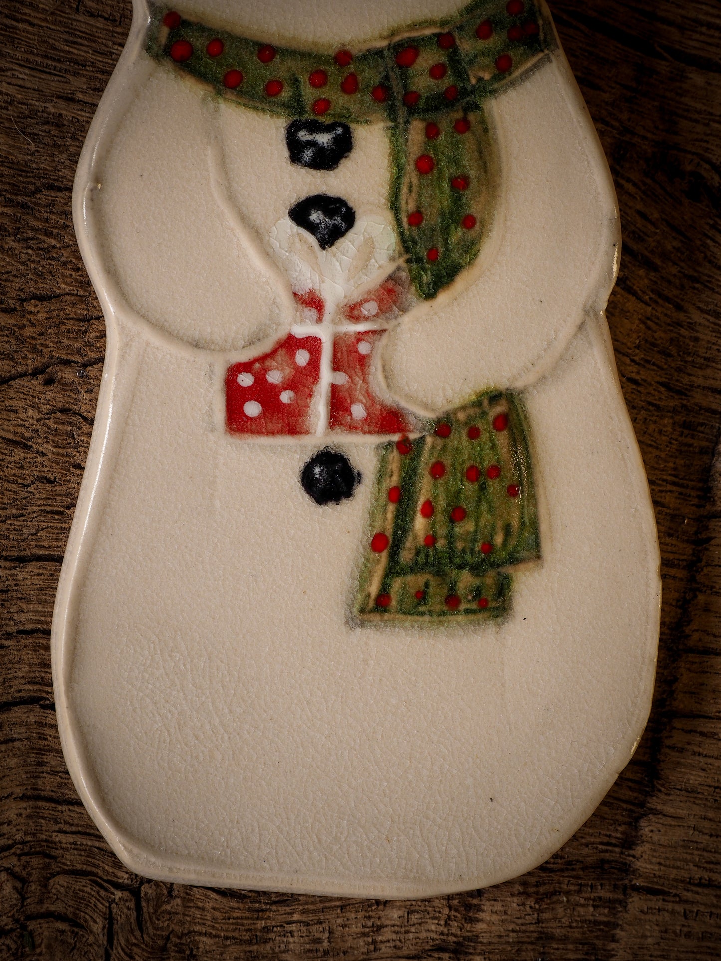 This is an original handmade fire glazed ceramic Christmas tree ornament by Danita Art.