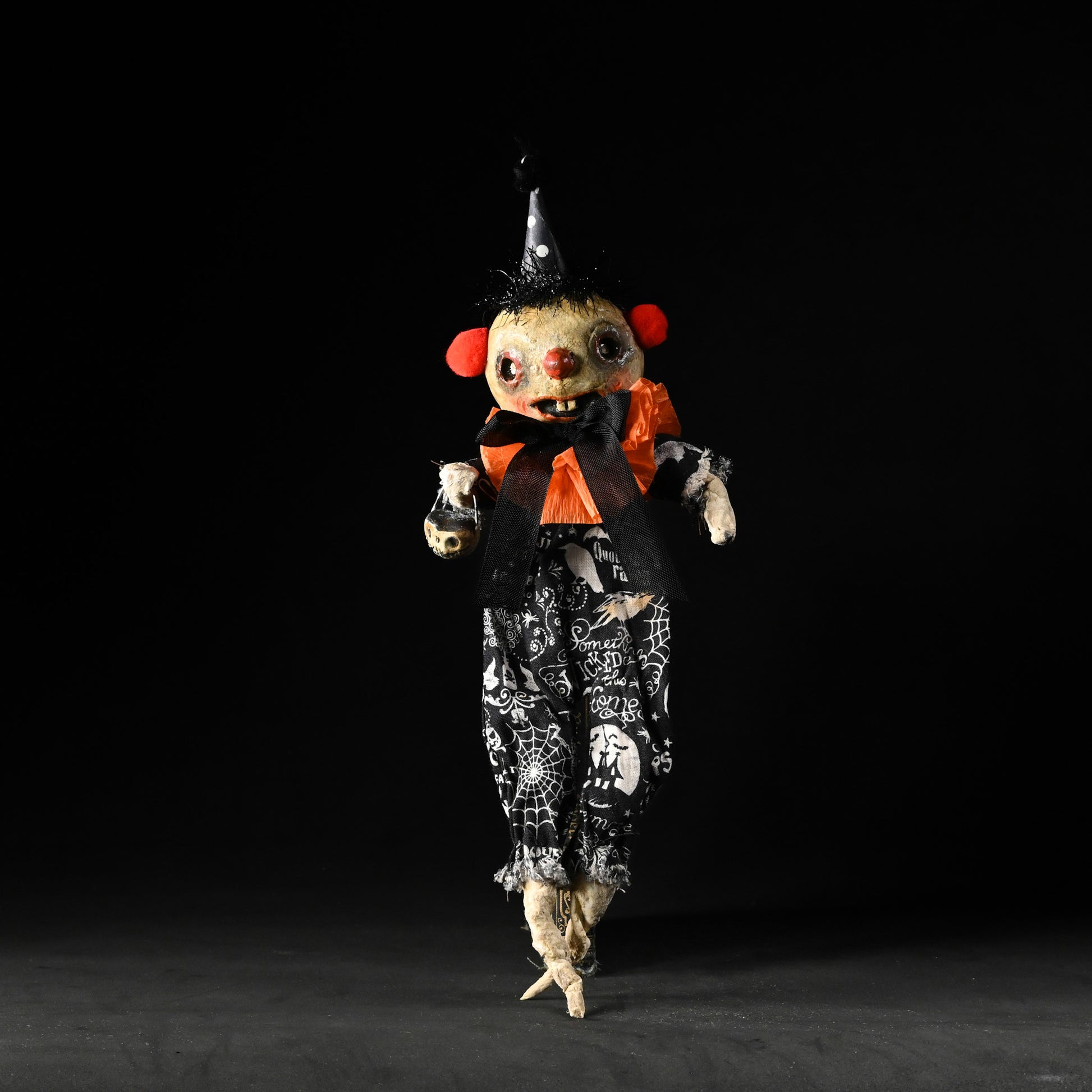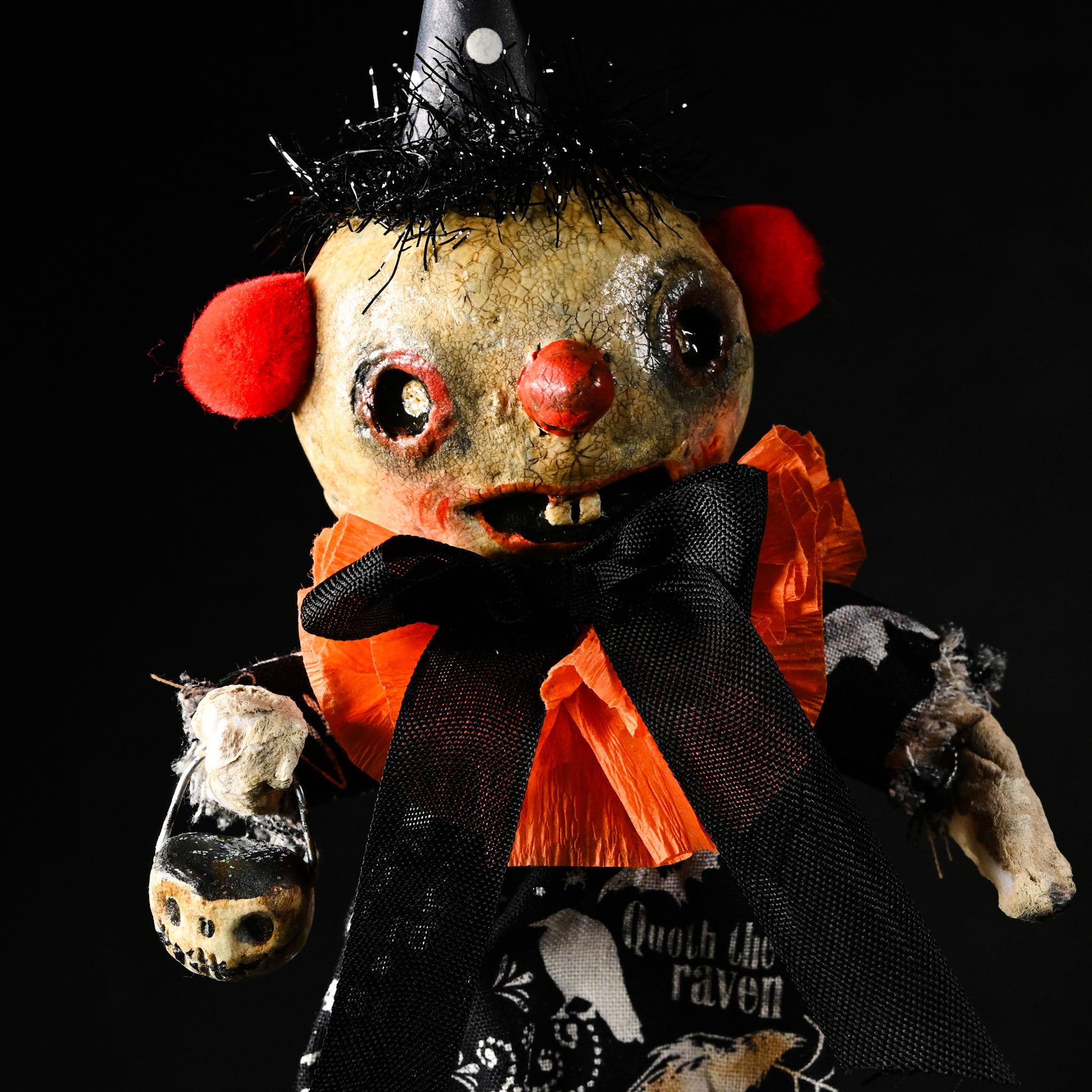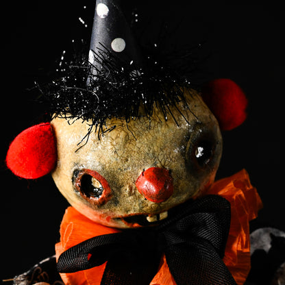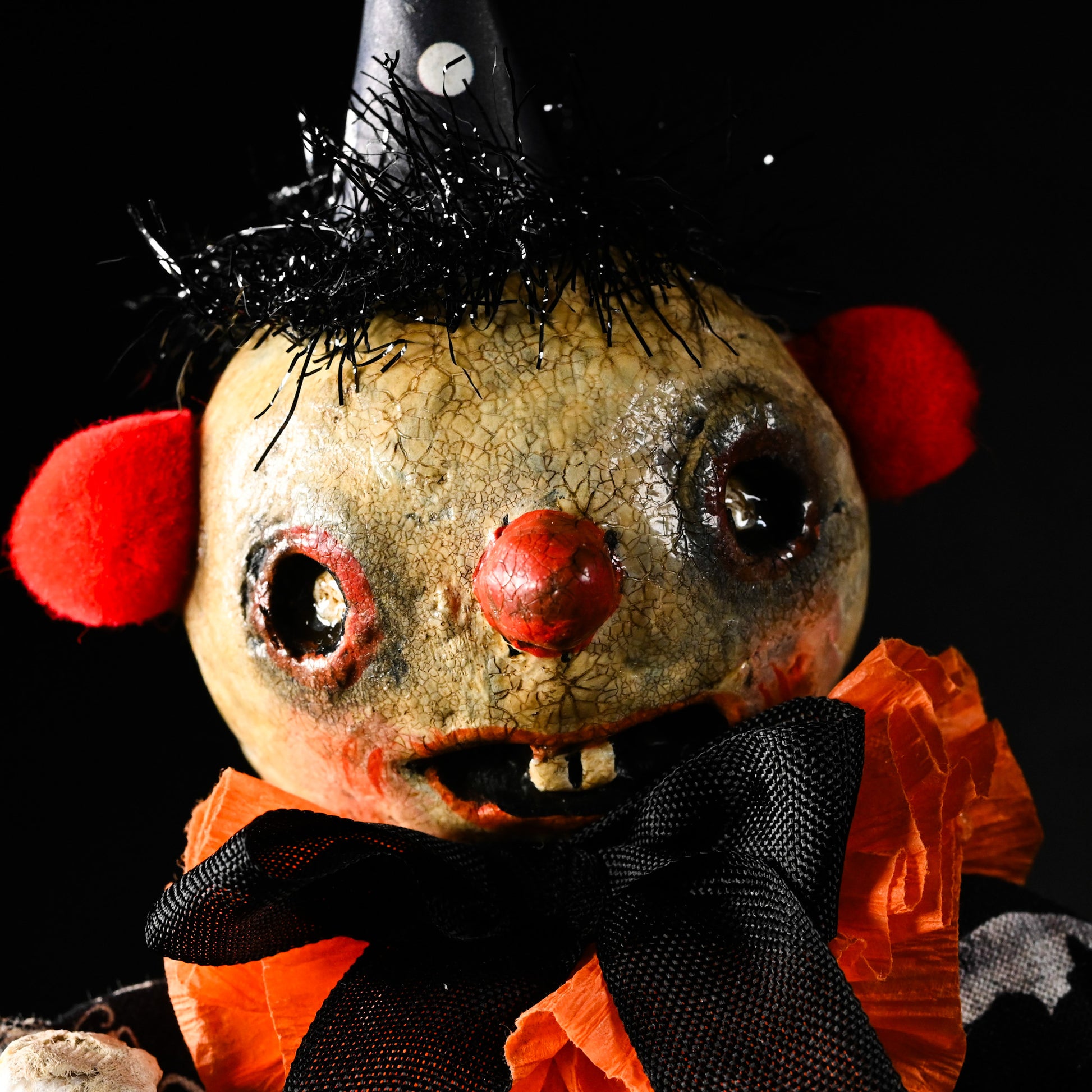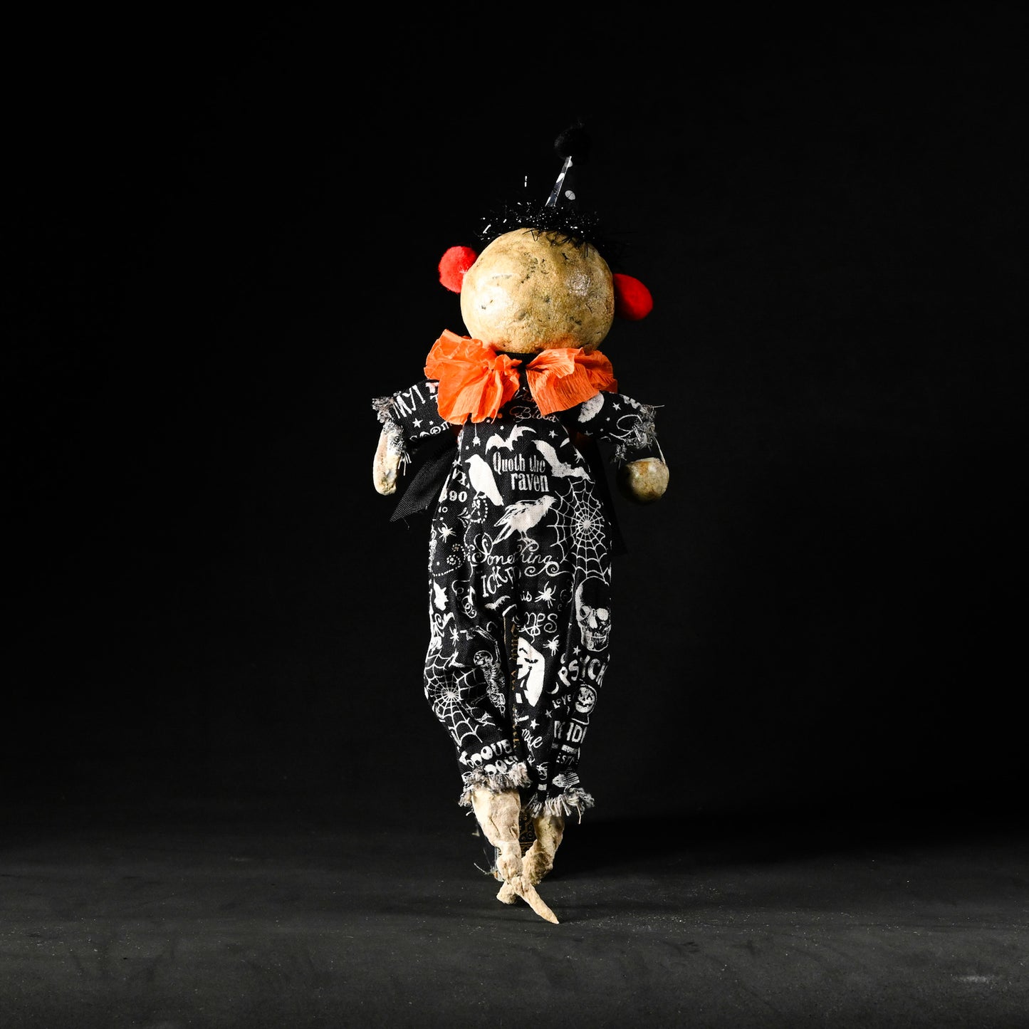 This handmade creepy cute Halloween original art doll was made by Idania Salcido, the artist behind Danita Art, using paper clay and fabrics, sculpting a whimsical face with the famous Danita lively eyes, painted with a spark of life on them.