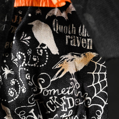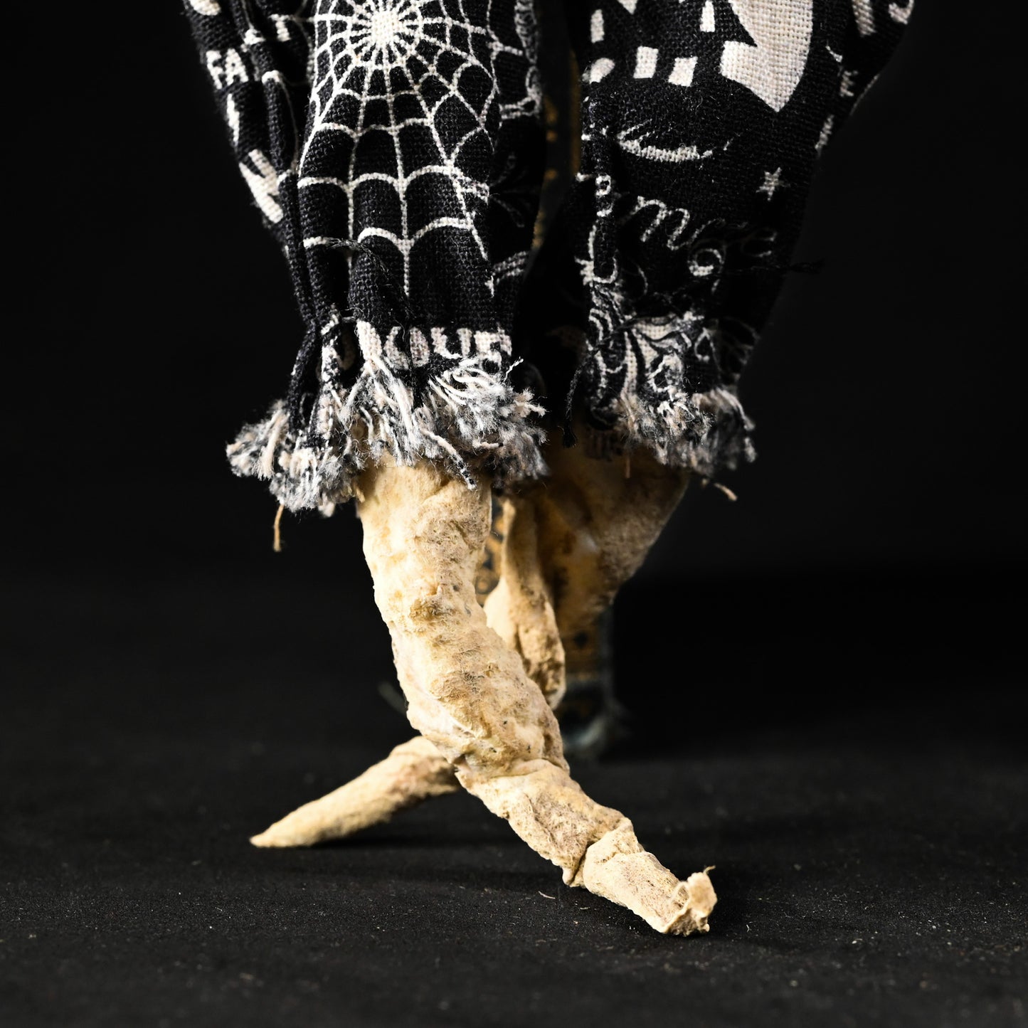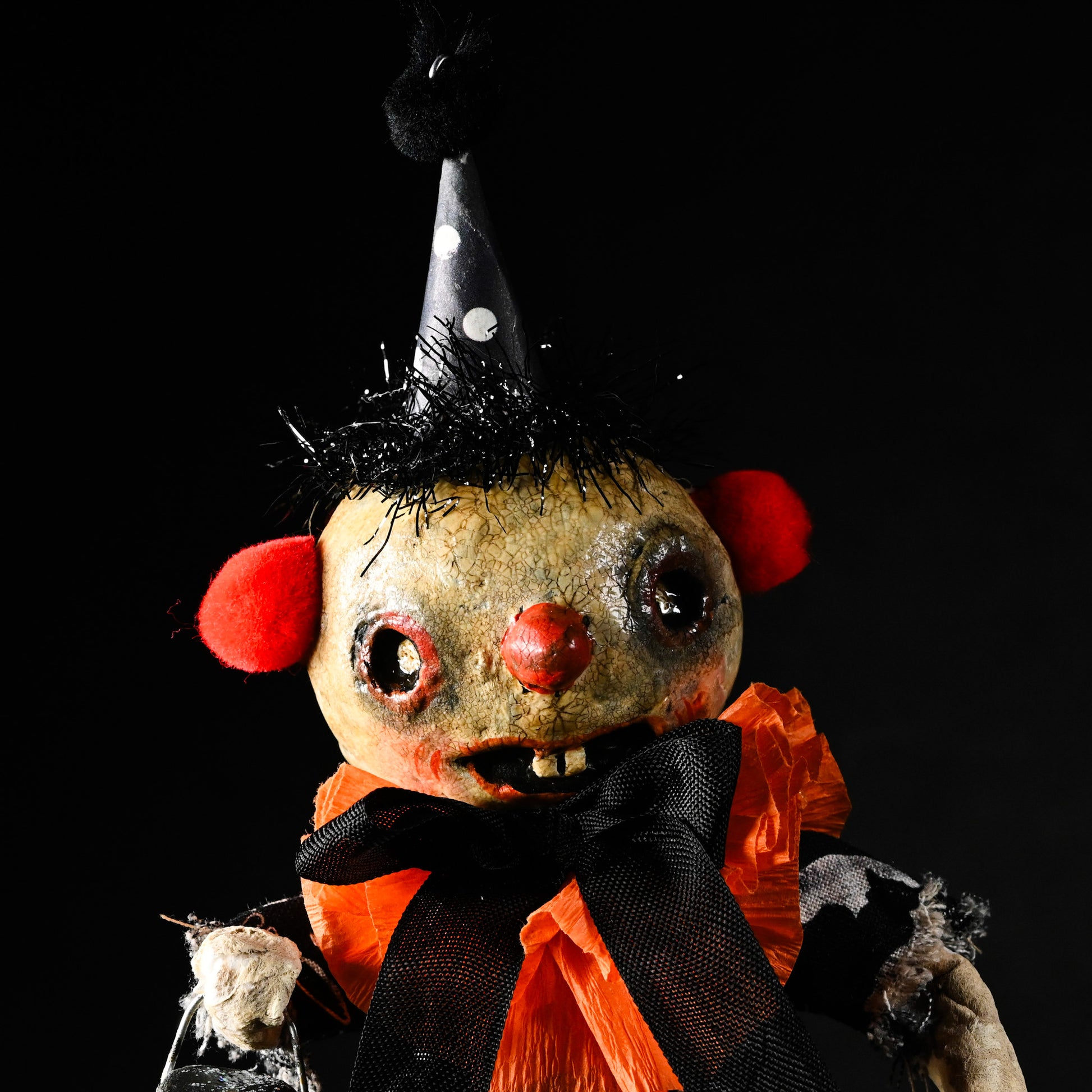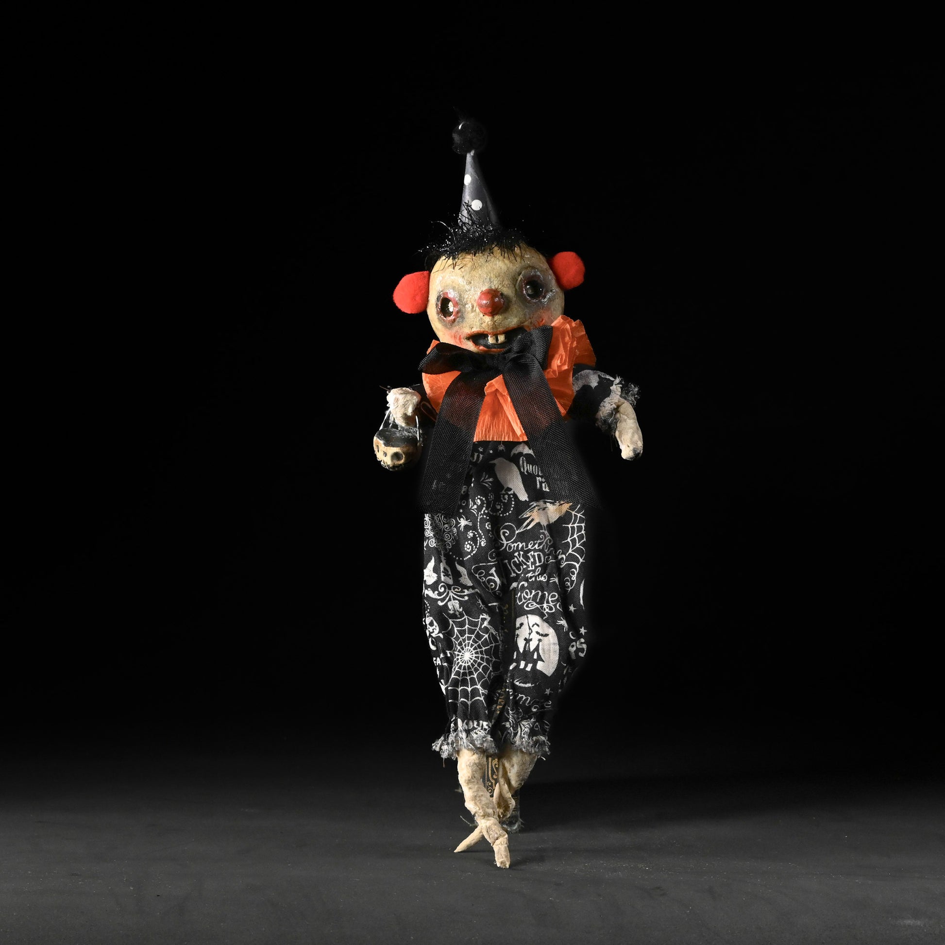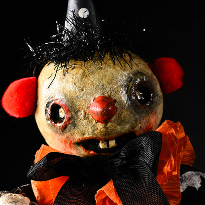 This handmade creepy cute Halloween original art doll was made by Idania Salcido, the artist behind Danita Art, using paper clay and fabrics, sculpting a whimsical face with the famous Danita lively eyes, painted with a spark of life on them.