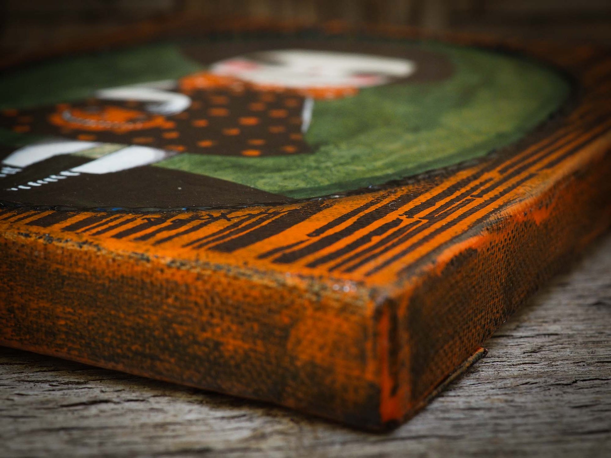 Painted on canvas, even when she is a pale skinned zombie girl, she keeps the whimsical Danita eyes that you love so much.